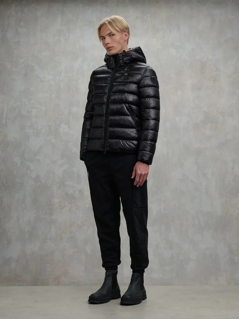 Giubbetto uomo idrorepellente in nylon micro-rip con leggero motivo check. Modello dalla classica siluette, indicato sia per la città metropolitana sia per il tempo libero. Imbottito in ovatta per offrire il maggior confort, assicurare calore e protezione e riservare una particolare attenzione al riciclo di fonti rinnovabili. • Cappuccio fisso con coulisse • Foderato in contrasto colore • Imbottito ovatta Sorona® Aura • Chiusura con zip nascosta • Copri cursore sul collo • Tasche con zip • Coulisse sul fondo • Tasche interne una con zip e l’altra con velcro • Patch e passante con logo