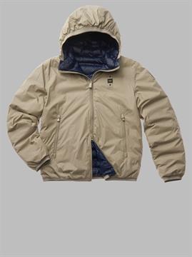 BLAUER PIUMINO UOMO Giubbetto reversibile liscio da una parte e con cuciture nastrate a righe orizzontale dall’altra. imbottitura sostenibile ottenuta dal riciclo di bottiglie di plastica. Capo con due versioni e due colori per offrire versatilità e alternativa per le diverse occasioni. • Cappuccio fisso • Realizzato in nylon • Foderato in nylon contrasto colore • Imbottito ovatta Repreve® • Chiusura con zip • Tasche con zip da una parte e con automatico dall’altra • Elastico in tono rigato sul profilo del cappuccio, polsino e fondo • Patch nella parte liscia e passante con logo in entrambe le versioni