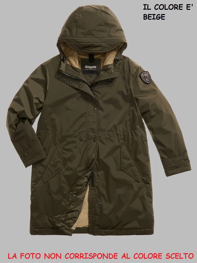 Parka lungo in nylon liscio leggero e idrorepellente con cappuccio fisso. Interno in morbida pelliccia ecologica in contrasto colore che dona calore e morbidezza. Coulisse in vita per dare al capo un effetto arricciato. • Cappuccio fisso con frontino • Interno in pelliccia ecologica • Chiusura con zip e automatici • Tasche con automatico • Tasche interne con velcro • Patch e passante con logo