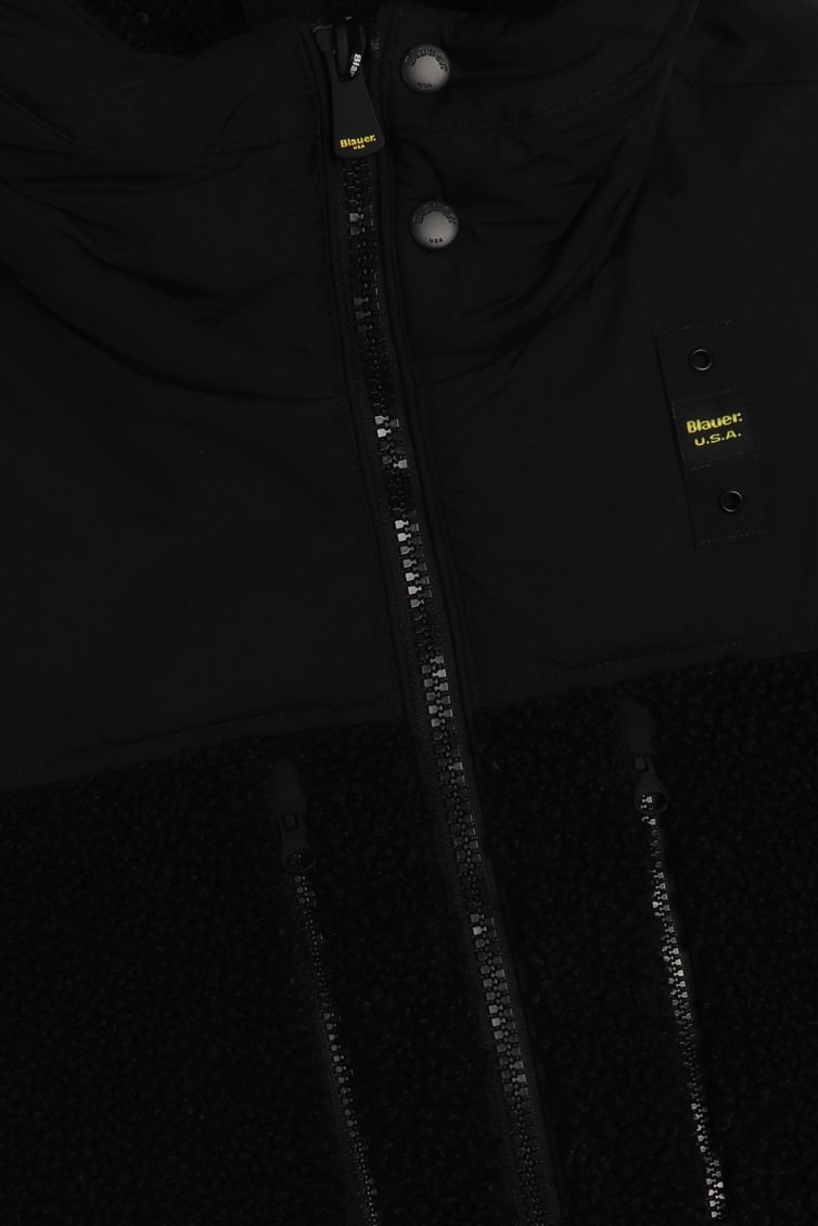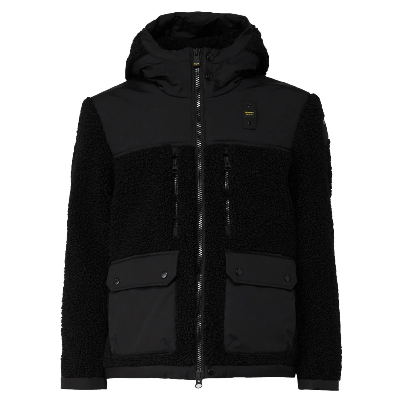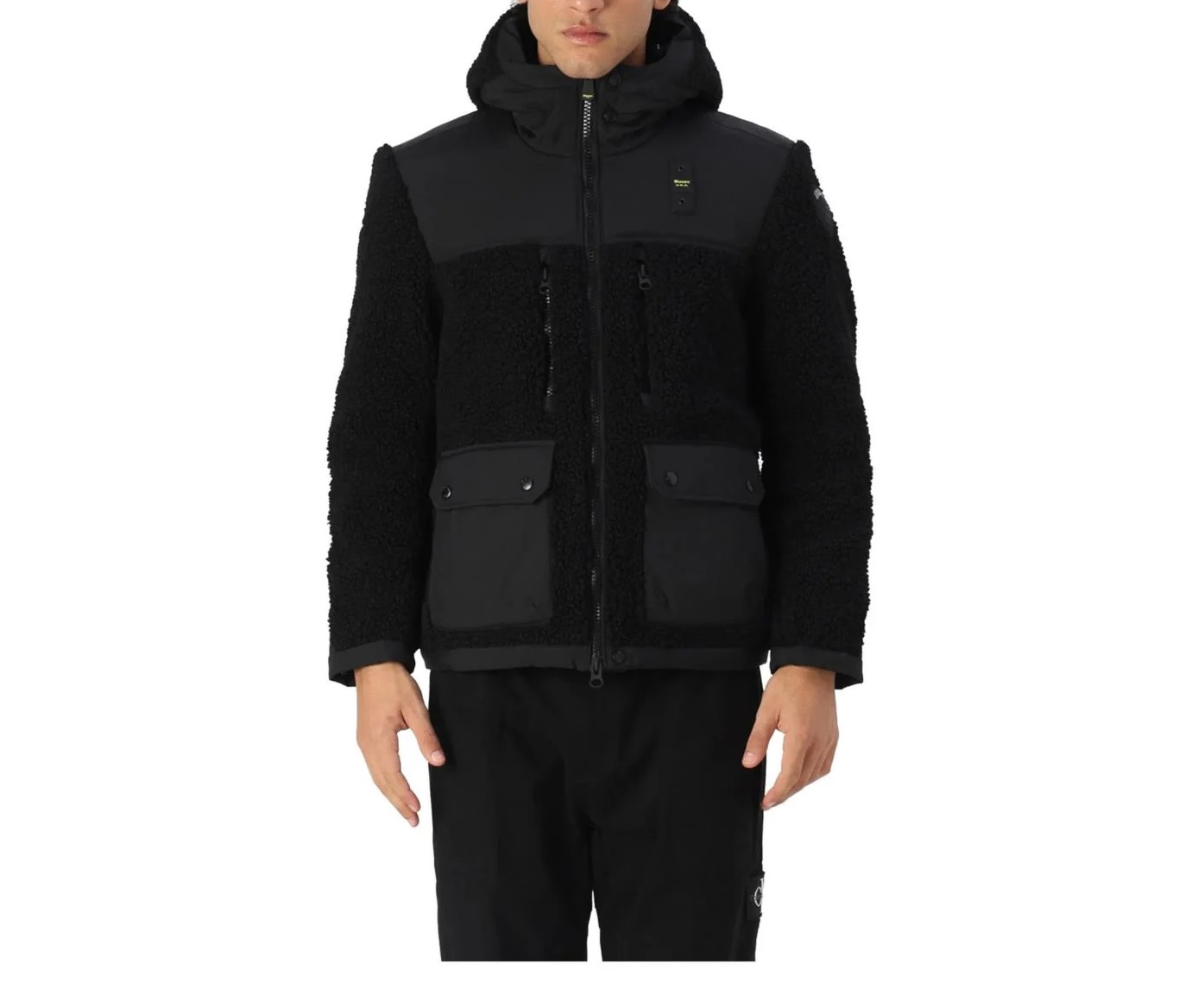 Giubbetto con cappuccio in pelliccia di montone ecologico con dettagli in taslan. Capo informale, facile da abbinare e pratico nell’uso. • Cappuccio fisso in pelliccia e taslan • Chiusura con zip • Tasche con zip e automatici • Tasche interne con velcro e pattina • Coulisse sul fondo • Patch e passante con logo