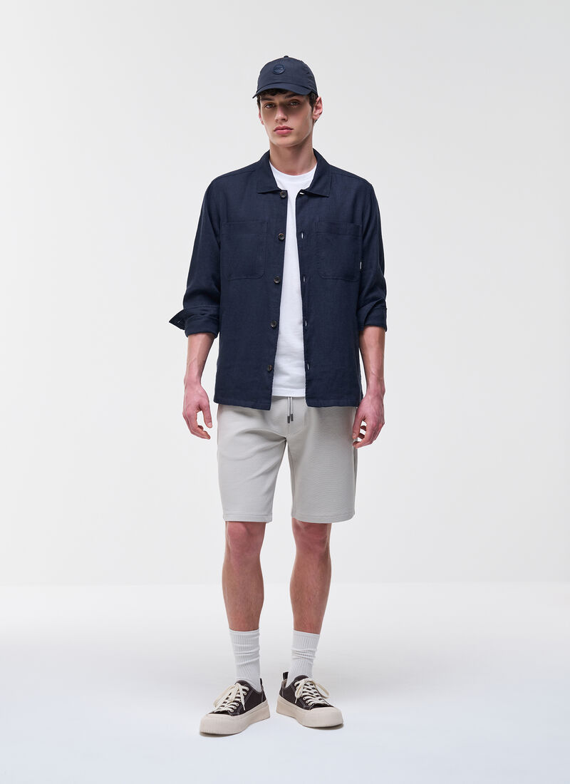 Dal design essenziale, questi pantaloncini da uomo si distinguono per la trama millerighe effetto tricot, che rende il capo unico nella sua semplicità. La vita elasticizzata con coulisse regolabile assicura un fit personalizzato, mentre le tasche laterali completano il modello con praticità. Perfetti da abbinare alle felpe in tessuto 1XL per un look coordinato.