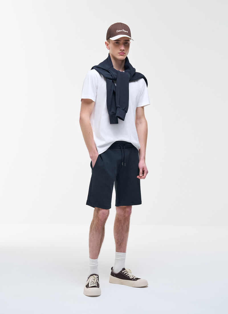 Dal design essenziale, questi pantaloncini da uomo si distinguono per la trama millerighe effetto tricot, che rende il capo unico nella sua semplicità. La vita elasticizzata con coulisse regolabile assicura un fit personalizzato, mentre le tasche laterali completano il modello con praticità. Perfetti da abbinare alle felpe in tessuto 1XL per un look coordinato.