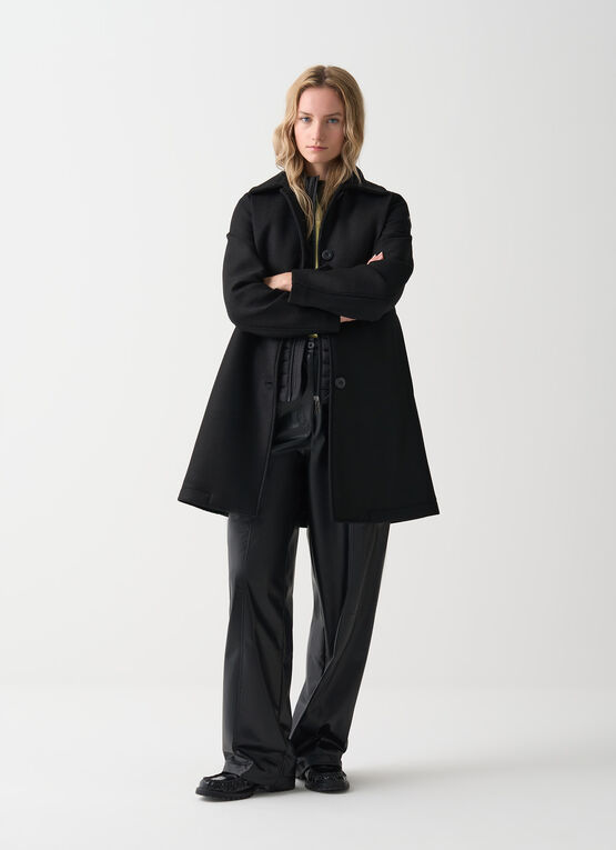 Il cappotto da donna per eccellenza in panno di lana offre calore, eleganza e una linea sartoriale dettagliata, perfetta per le giornate più fredde dell'inverno.