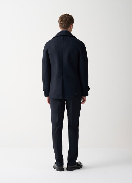 Simbolo di stile, il cappotto doppiopetto in panno di lana è perfetto per le temperature miti, esaltando l’eleganza maschile con dettagli e finiture sartoriali.