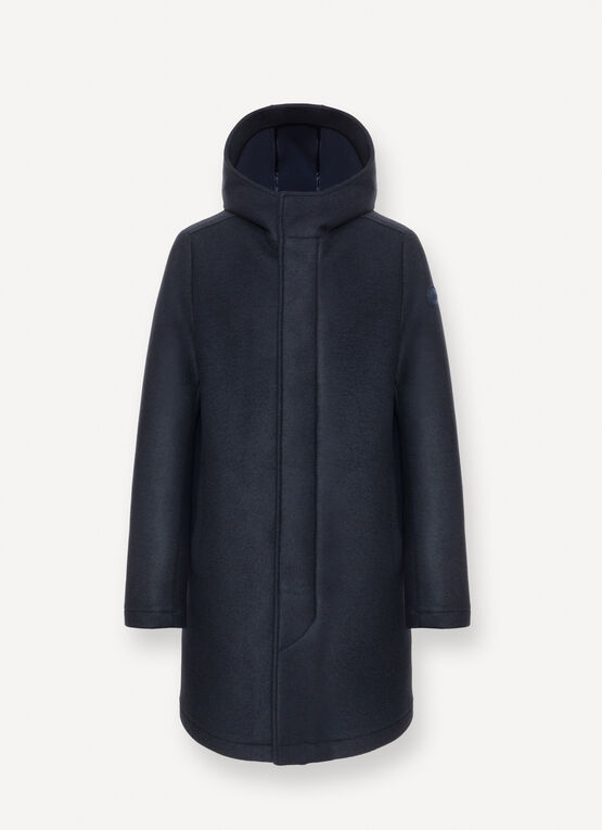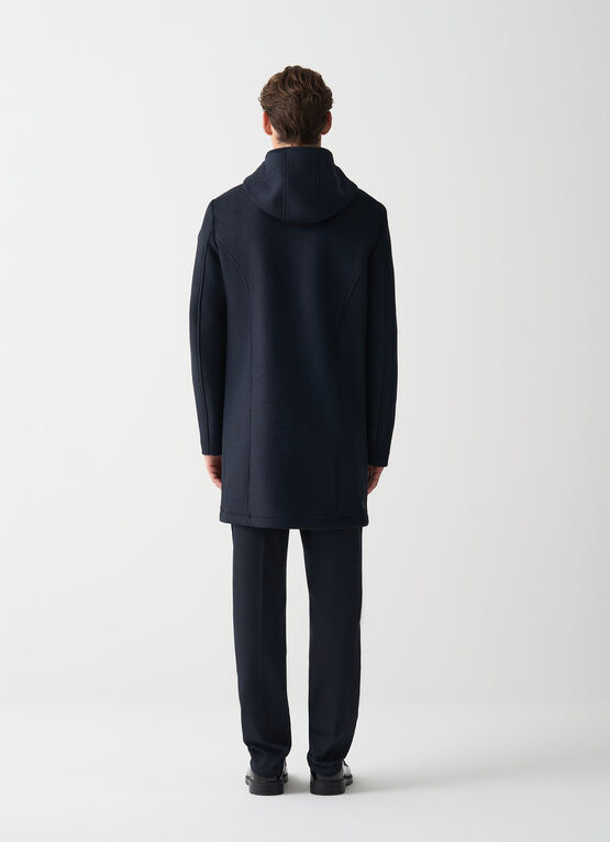 Il cappotto lungo da uomo si rinnova in chiave sportiva con il cappuccio, combinando eleganza e praticità per un look casual, ideale nelle giornate più fresche.