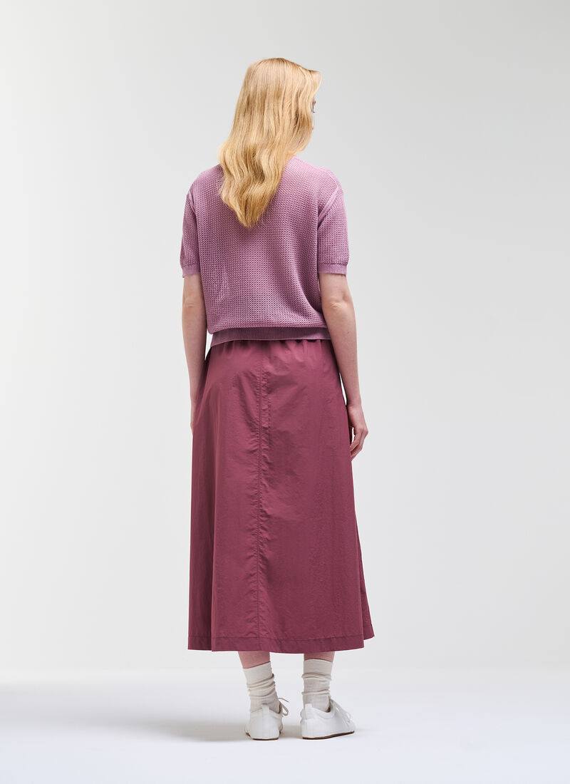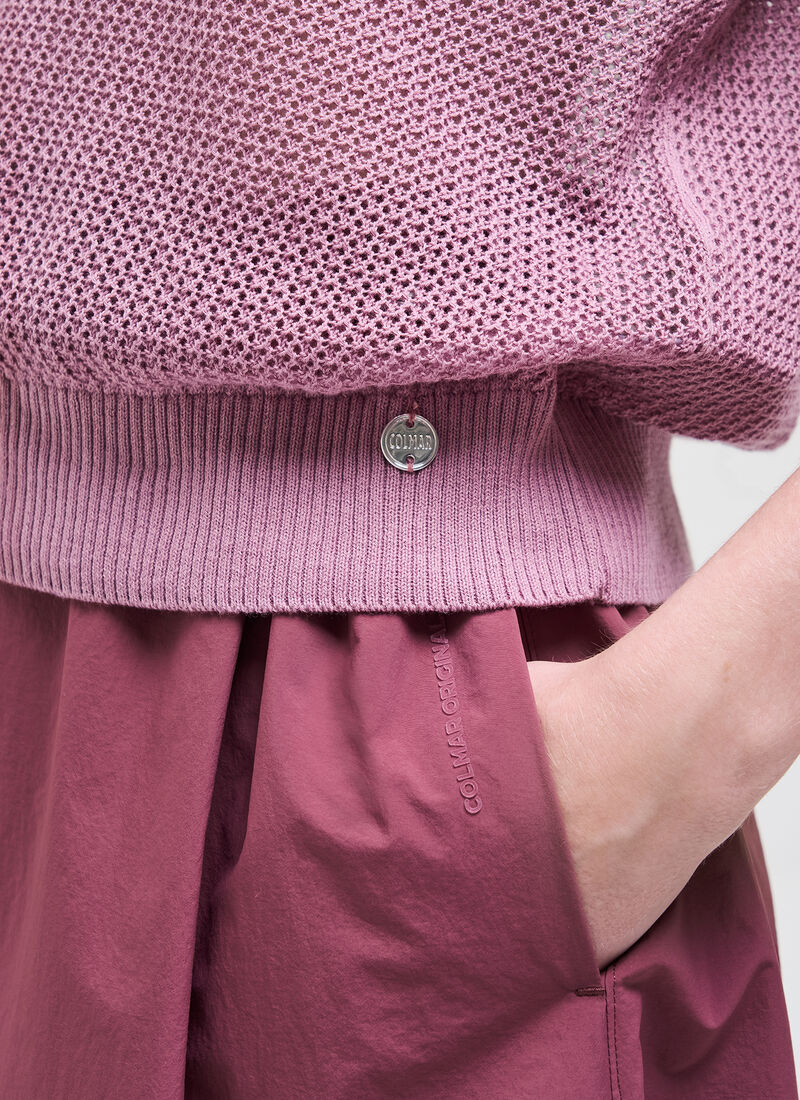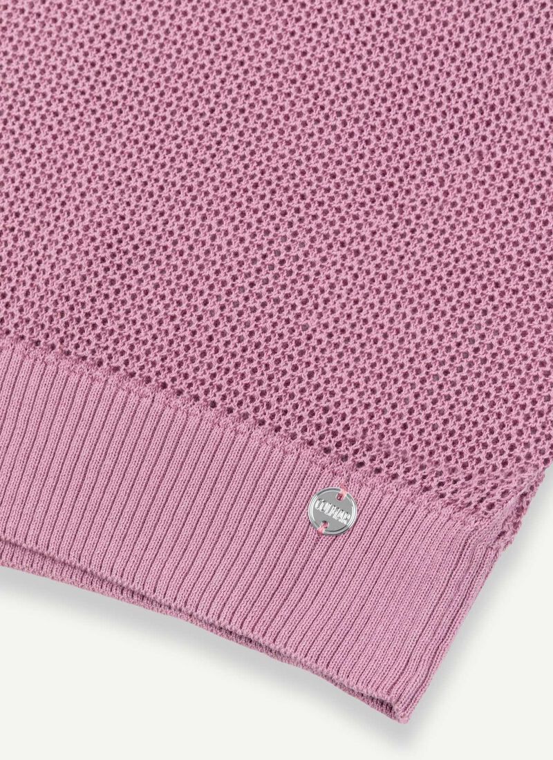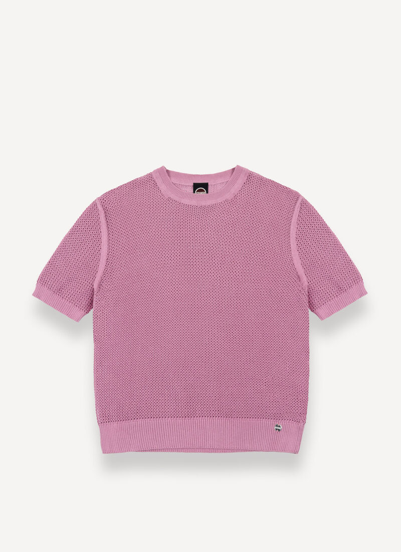 Questa t-shirt da donna reinterpreta un classico in chiave estiva, offrendo uno stile fresco e distintivo. Realizzata in maglia di cotone a punto rete, presenta spalle scese e un fit morbido che conferiscono un tocco casual ma ricercato. La lavorazione traforata permette di giocare con abbinamenti creativi al di sotto, per creare look personalizzati e dall’impatto originale.