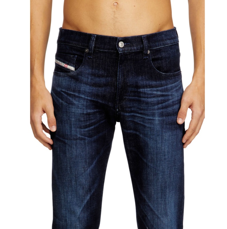 Slim fit con vita media e gamba slim. La costruzione è caratterizzata da linee pulite e confortevoli, che limitano l'arricciamento della gamba. Parte della selezione DNA Diesel, questo denim comfort blu scuro è pensato per chi apprezza un leggero effetto used, con sfumature e whisker in tonalità scure. Rifinito con cuciture tono su tono, è realizzato con cotone rigenerativo e una leggera componente stretch.