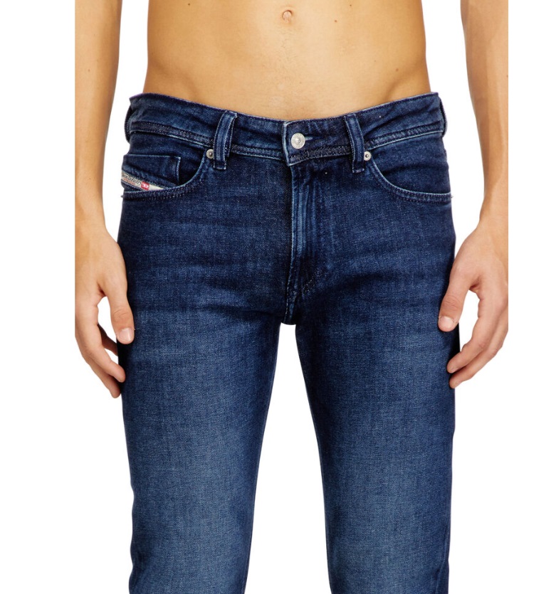 Skinny fit con vita bassa e gamba affusolata dalla coscia alla caviglia. La lunghezza extra della gamba crea un effetto volutamente arricciato al fondo. Presenta un lavaggio blu scuro pulito, parte della selezione di DNA essentials di Diesel. Realizzato in denim stretch con cotone biologico.