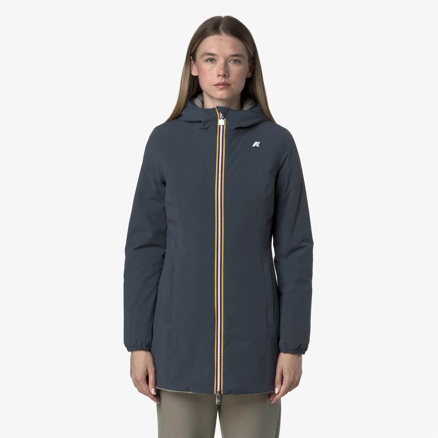 Denise è la giacca da donna con lunghezza a tre quarti che reinterpreta l'ispirazione funzionale K-Way in chiave femminile. Il modello combina un lato in poliestere elasticizzato impermeabile tinta unita e un lato in poliestere antivento dal colore a contrasto. L'imbottitura in ovatta offre un grado di calore medio, ideale per la mezza stagione, mentre le cuciture termonastrate isolano dal freddo e offrono maggiore comfort durante l'attività outdoor.
