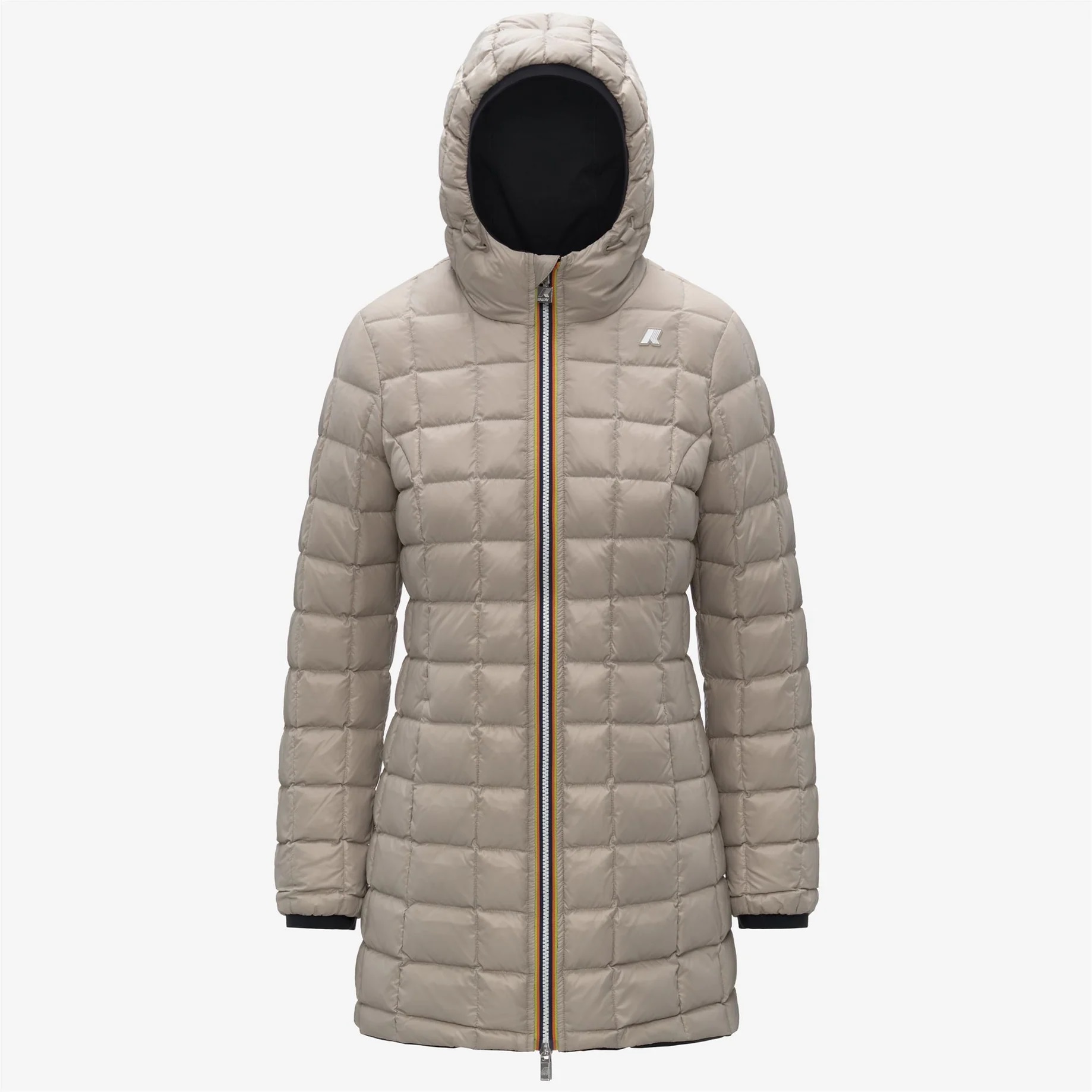 La giacca a tre quarti da donna Denise è la proposta K-Way per le giornate di freddo più intenso. Il modello reversibile consente due opzioni di utilizzo perchè combina un lato in tessuto tecnico liscio e l'altro in nylon trapuntato dal colore a contrasto. L'interno è imbottito in piuma. Tessuto eco in poliestere elasticizzato impermeabile, idrorepellente, antivento, traspirante Tessuto nylon trapuntato antivento, traspirante, con tenuta piuma Imbottitura in piuma Grado di calore alto Reversibile Cuciture termonastrate Cappuccio regolabile con corda elastica Chiusura con zip Polsi con elastico 2 tasche con zip 2 tasche con bottoni a pressione Fitting slim Logo in silicone bianco