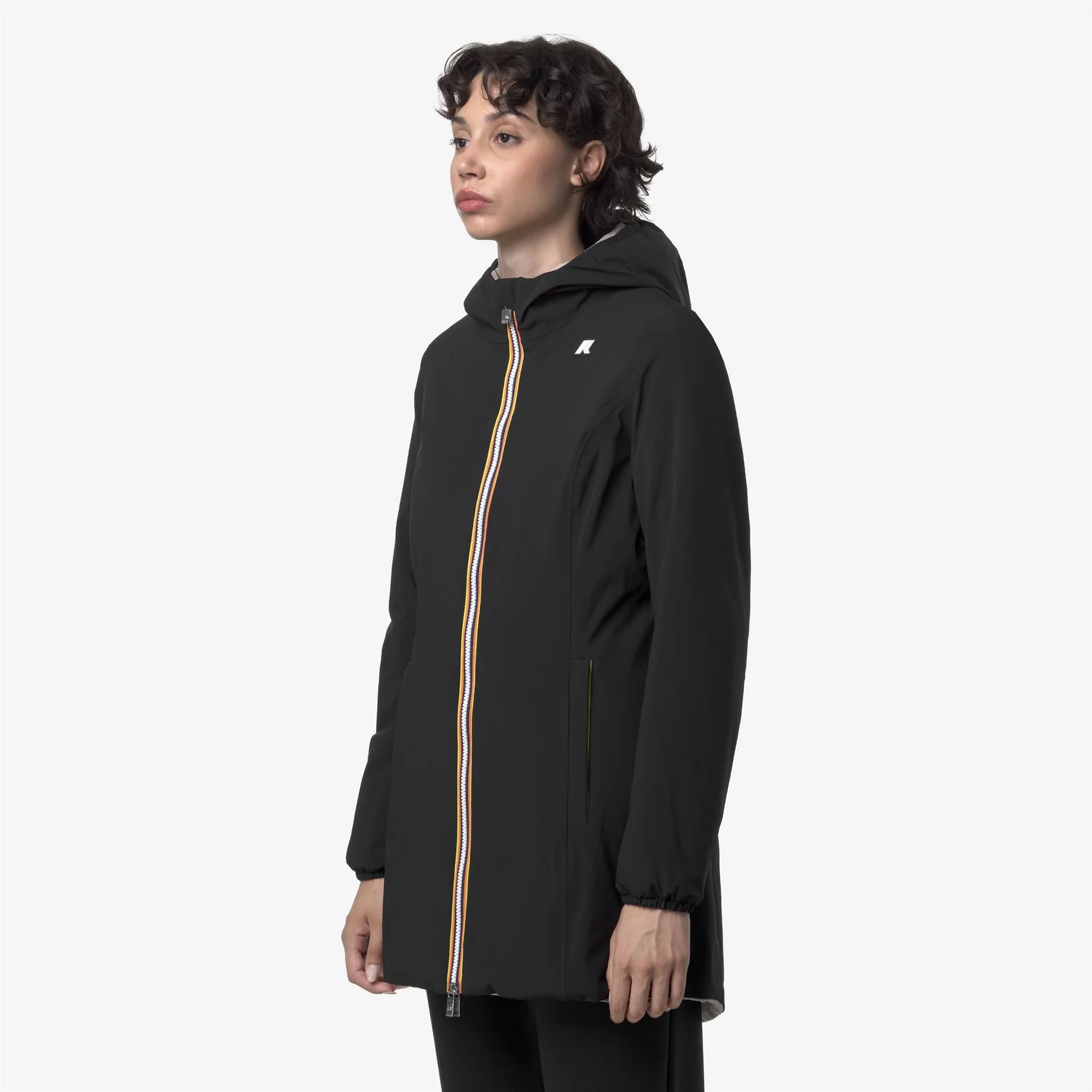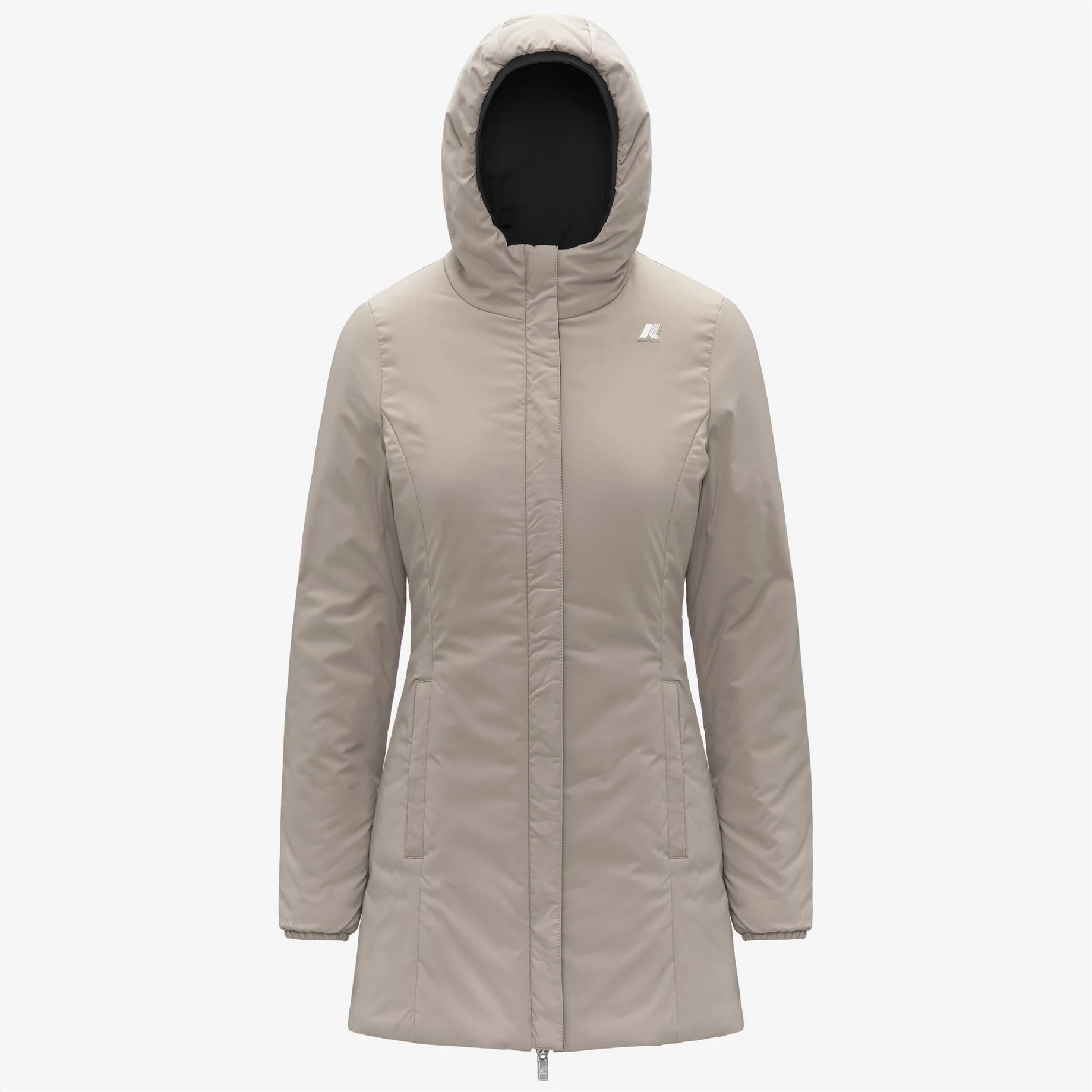 Denise è la giacca da donna con lunghezza a tre quarti che reinterpreta l'ispirazione funzionale K-Way in chiave femminile. Il modello combina un lato in poliestere elasticizzato impermeabile tinta unita e un lato in poliestere antivento dal colore a contrasto. L'imbottitura in ovatta offre un grado di calore medio, ideale per la mezza stagione, mentre le cuciture termonastrate isolano dal freddo e offrono maggiore comfort durante l'attività outdoor.