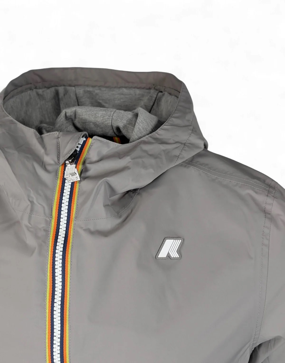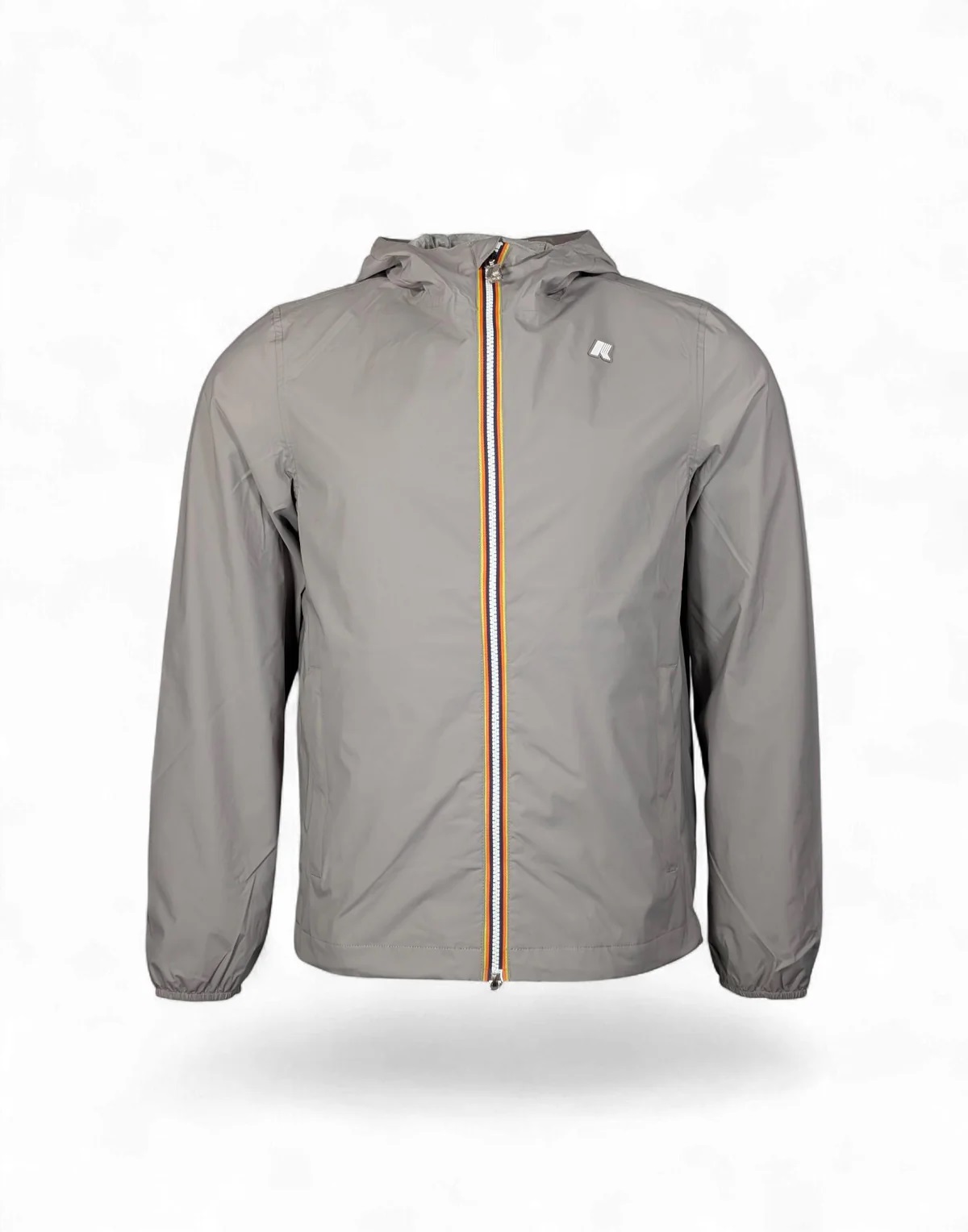 Jack è una giacca da uomo con vestibilità slim, realizzata in nylon stretch resistente agli agenti atmosferici e rifinita con una fodera in morbido jersey di cotone grigio melange applicata solo su fronte e retro, per garantire comfort superiore e una piacevole sensazione a contatto con la pelle. L’interno è curato nei dettagli con cuciture termonastrate e l’iconico tape multicolor K-Way applicato al punto vita, che aggiunge una nota distintiva al design. Tessuto nylon stretch impermeabile, antivento e traspirante Fodera in jersey di cotone Cuciture termonastrate Cappuccio fisso regolabile Taglio di ventilazione sul retro Chiusura con zip Polsi con elastico Fondo regolabile con coulisse 2 tasche con zip Fitting slim