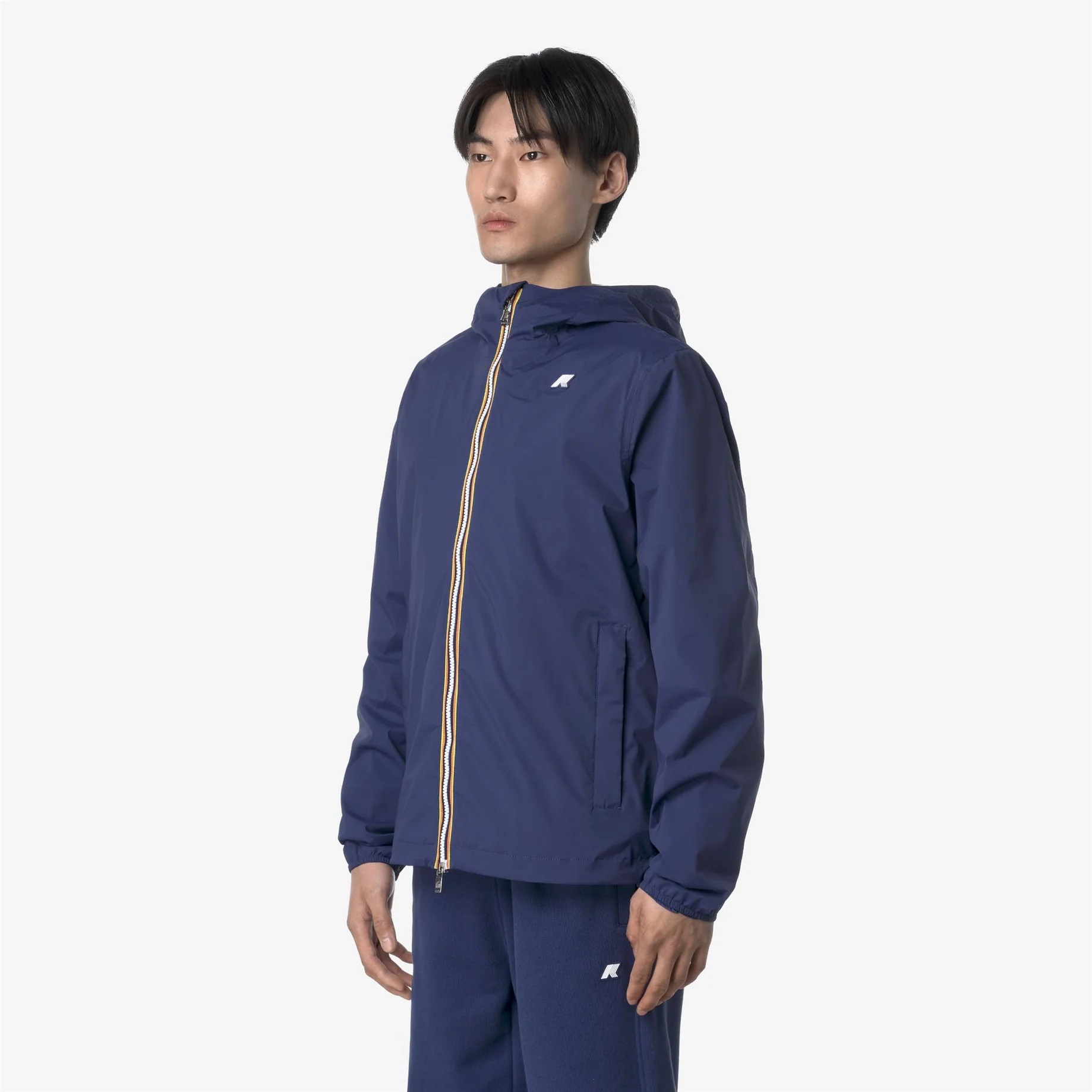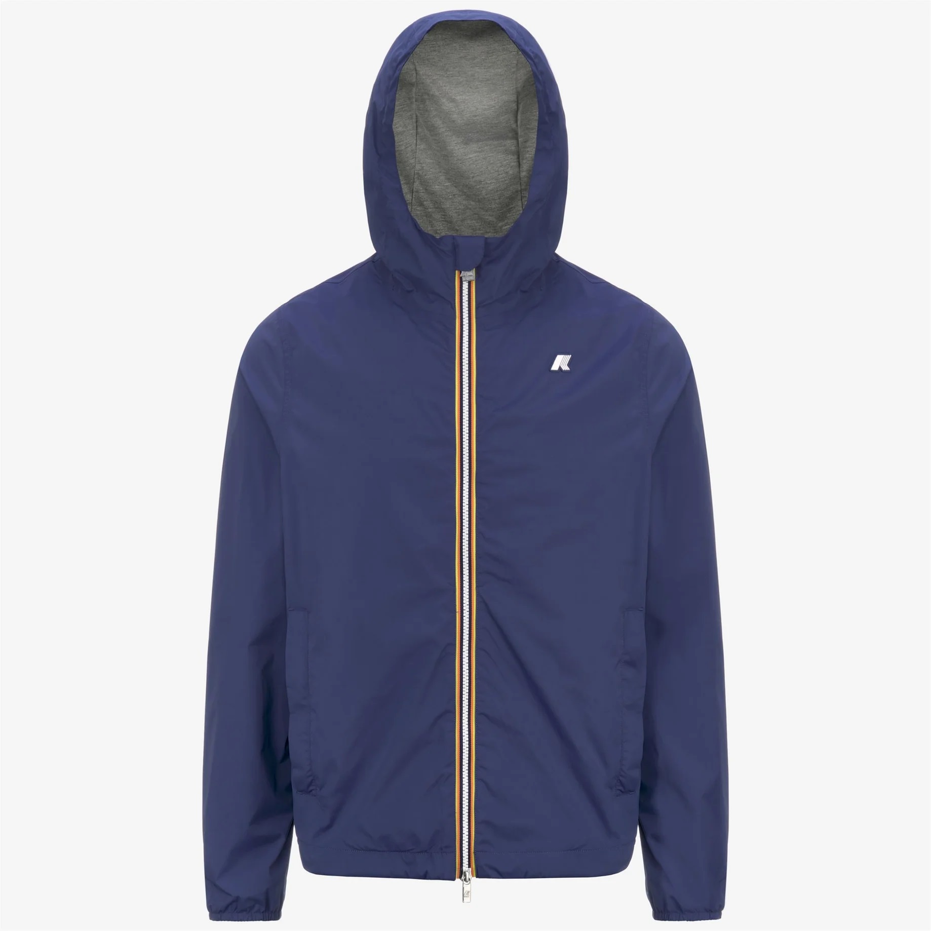 Jack è una giacca da uomo con vestibilità slim, realizzata in nylon stretch resistente agli agenti atmosferici e rifinita con una fodera in morbido jersey di cotone grigio melange applicata solo su fronte e retro, per garantire comfort superiore e una piacevole sensazione a contatto con la pelle. L’interno è curato nei dettagli con cuciture termonastrate e l’iconico tape multicolor K-Way applicato al punto vita, che aggiunge una nota distintiva al design. Tessuto nylon stretch impermeabile, antivento e traspirante Fodera in jersey di cotone Cuciture termonastrate Cappuccio fisso regolabile Taglio di ventilazione sul retro Chiusura con zip Polsi con elastico Fondo regolabile con coulisse 2 tasche con zip Fitting slim