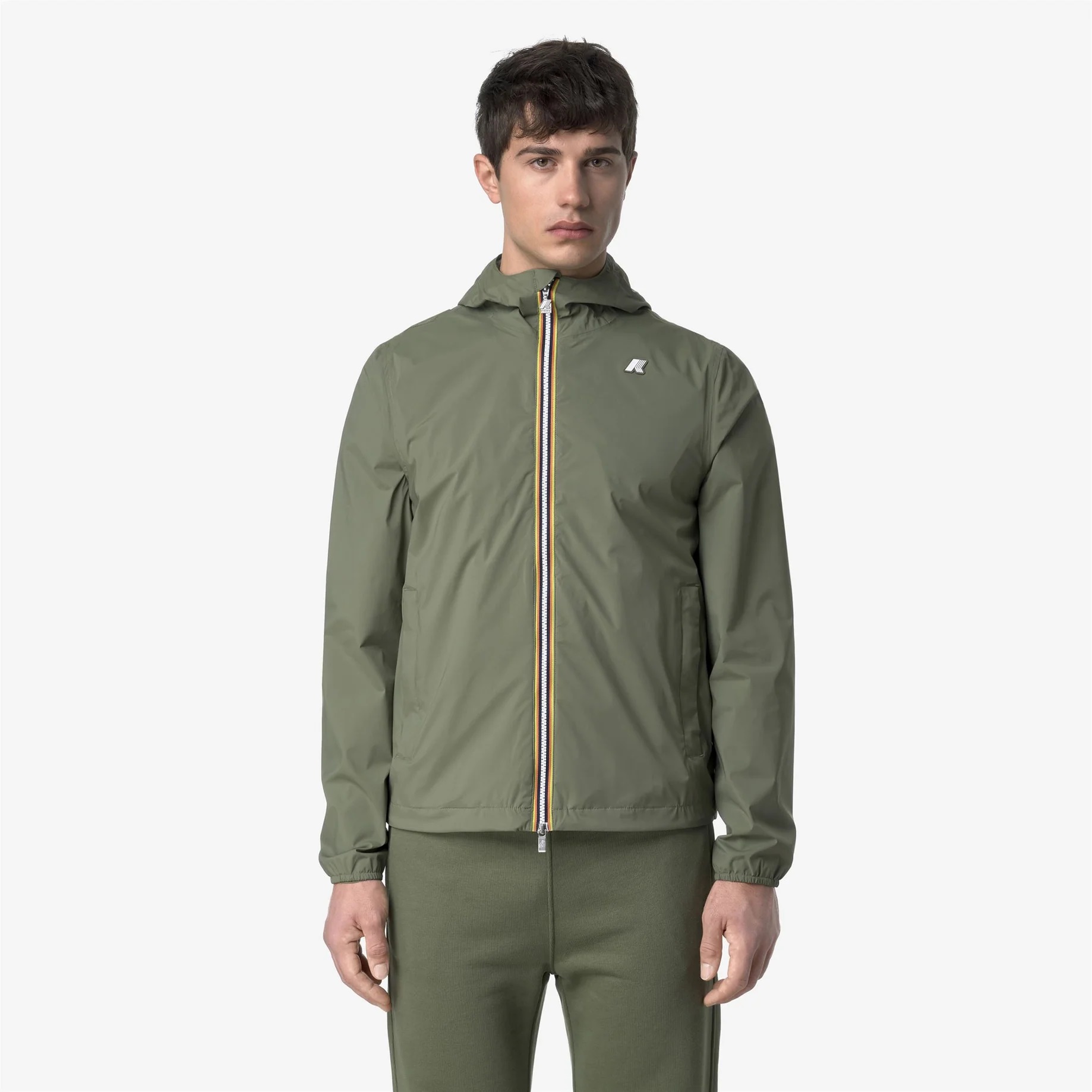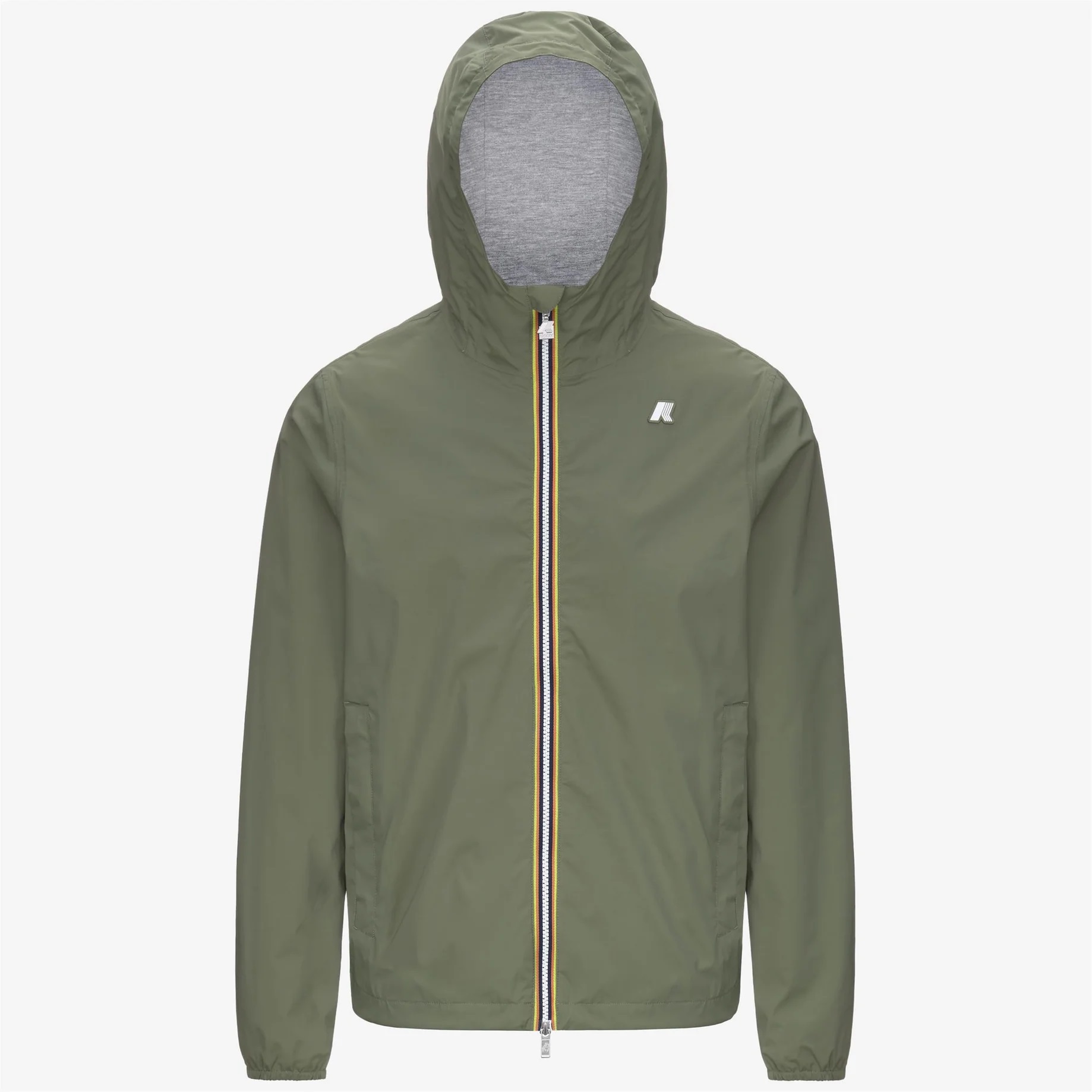 Jack è una giacca da uomo con vestibilità slim, realizzata in nylon stretch resistente agli agenti atmosferici e rifinita con una fodera in morbido jersey di cotone grigio melange applicata solo su fronte e retro, per garantire comfort superiore e una piacevole sensazione a contatto con la pelle. L’interno è curato nei dettagli con cuciture termonastrate e l’iconico tape multicolor K-Way applicato al punto vita, che aggiunge una nota distintiva al design. Tessuto nylon stretch impermeabile, antivento e traspirante Fodera in jersey di cotone Cuciture termonastrate Cappuccio fisso regolabile Taglio di ventilazione sul retro Chiusura con zip Polsi con elastico Fondo regolabile con coulisse 2 tasche con zip Fitting slim