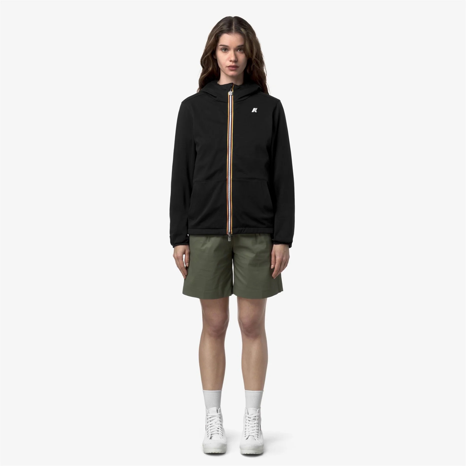 Jake è una giacca corta unisex pensata per uno stile di vita dinamico e per affrontare il clima mutevole primaverile. Il design reversibile combina praticità e attitudine sportiva, con un lato in felpa di cotone morbido effetto scuba e l’altro lato in nylon riciclato resistente all’acqua e traspirante, in colore a contrasto. Il capo è dotato di cappuccio regolabile e tasche da entrambi i lati. Tessuto esterno: interlock 100% cotone Tessuto interno: 100% nylon riciclato waterproof a finitura opaca Impermeabilità tessuto interno: 3000 mm colonna d'acqua Design reversibile Cuciture termonastrate Cappuccio non staccabile regolabile con corda elastica Fondo corpo regolabile con corda elastica Chiusura zip Polsini elasticizzati 1 tasca a marsupio 2 tasche con bottone a pressione Vestibilità slim Logo in silicone bianco