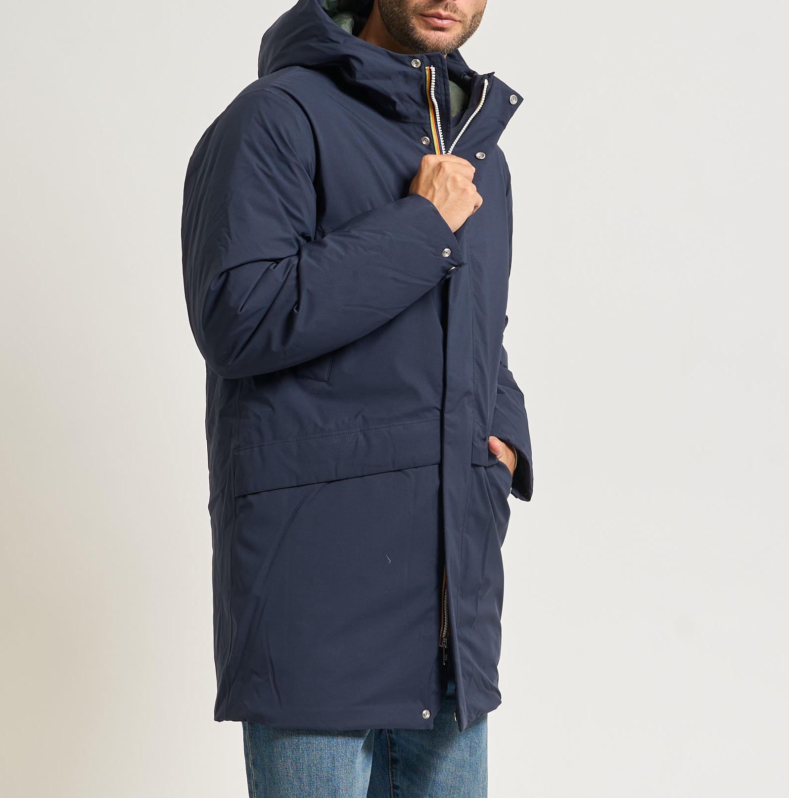 Jarno è una giacca da uomo a tre quarti imbottita in piuma Molina e progettata per proteggere dal clima più rigido. Il modello si distingue per il design funzionale, con un lato in tessuto tecnico liscio e l'altro in nylon trapuntato dal colore a contrasto. Le tasche presenti su entrambi i lati, il cappuccio regolabile e i polsini elastici, la chiusura con zip e la flap antivento sono dettagli funzionali che proteggono dal freddo durante l’attività outdoor.