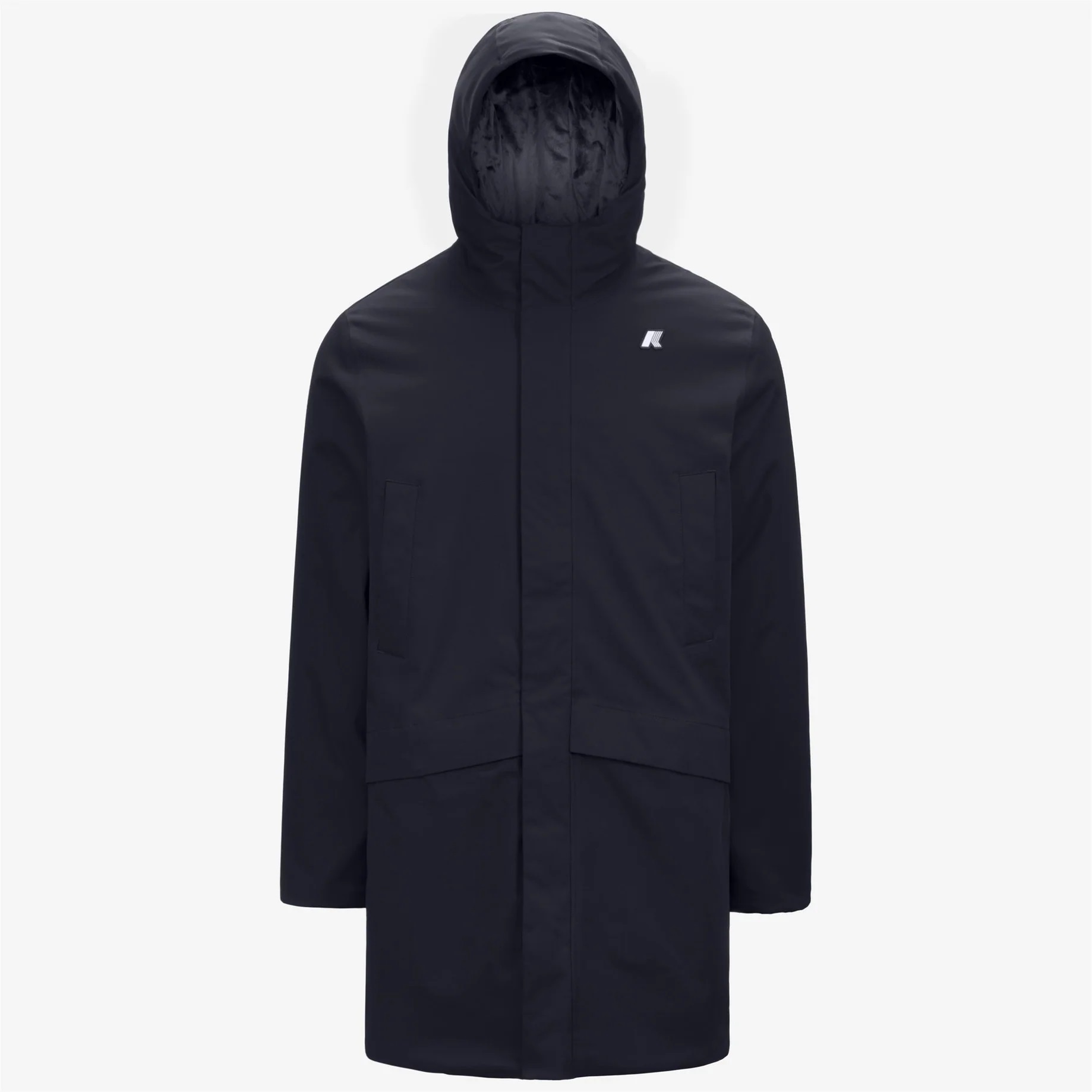 Tessuto Twill in poliestere impermeabile, idrorepellente, antivento Fodera in tessuto soffice Imbottitura ovatta peso leggero Grado di calore medio Cuciture termonastrate Cappuccio non staccabile regolabile con corda elastica e fermacorda Chiusura con zip coperta dalla patta Polsini con ghetta interna 2 tasche scalda-mani sul petto 2 tasche con patta e chiusura con snap Fitting regular Logo applicato in silicone bianco