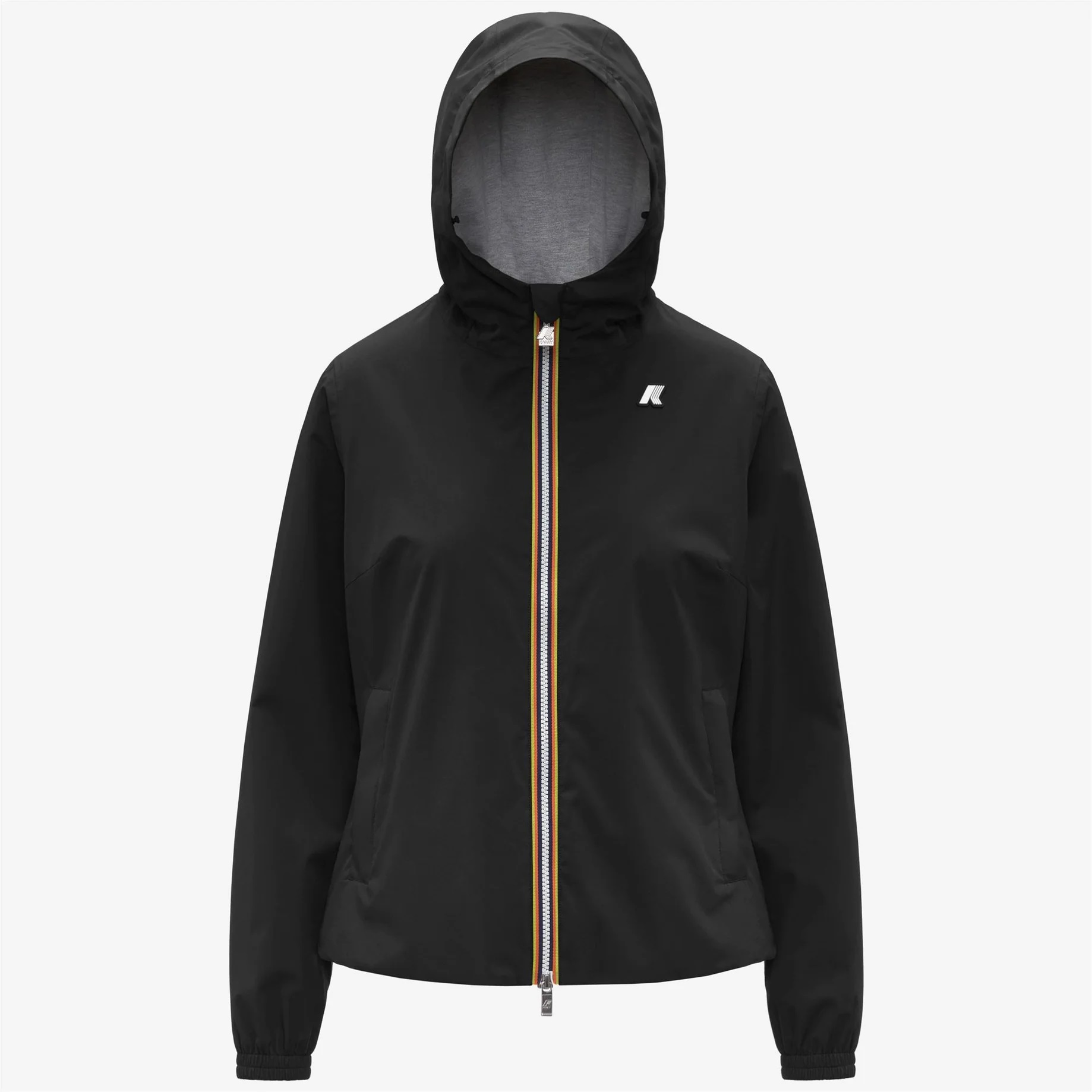 Lil è una giacca corta da donna con un look casual ideale per la mezza stagione. Il modello è realizzato in tessuto stretch con spalmatura impermeabile e antivento, membrana isolante e una fodera interna in morbido jersey di cotone grigio melange. La giacca presenta cappuccio regolabile e bordi elasticizzati per una vestibilità confortevole. Tessuto poliestere riciclato elasticizzato, impermeabile, idrorepellente, antivento, traspirante Membrana interna stampata con logo Cuciture termonastrate Cappuccio regolabile con corda elastica Chiusura con zip Polso e fondo corpo elasticizzati 2 tasche con zip Vestibilità regolare Logo in silicone bianco