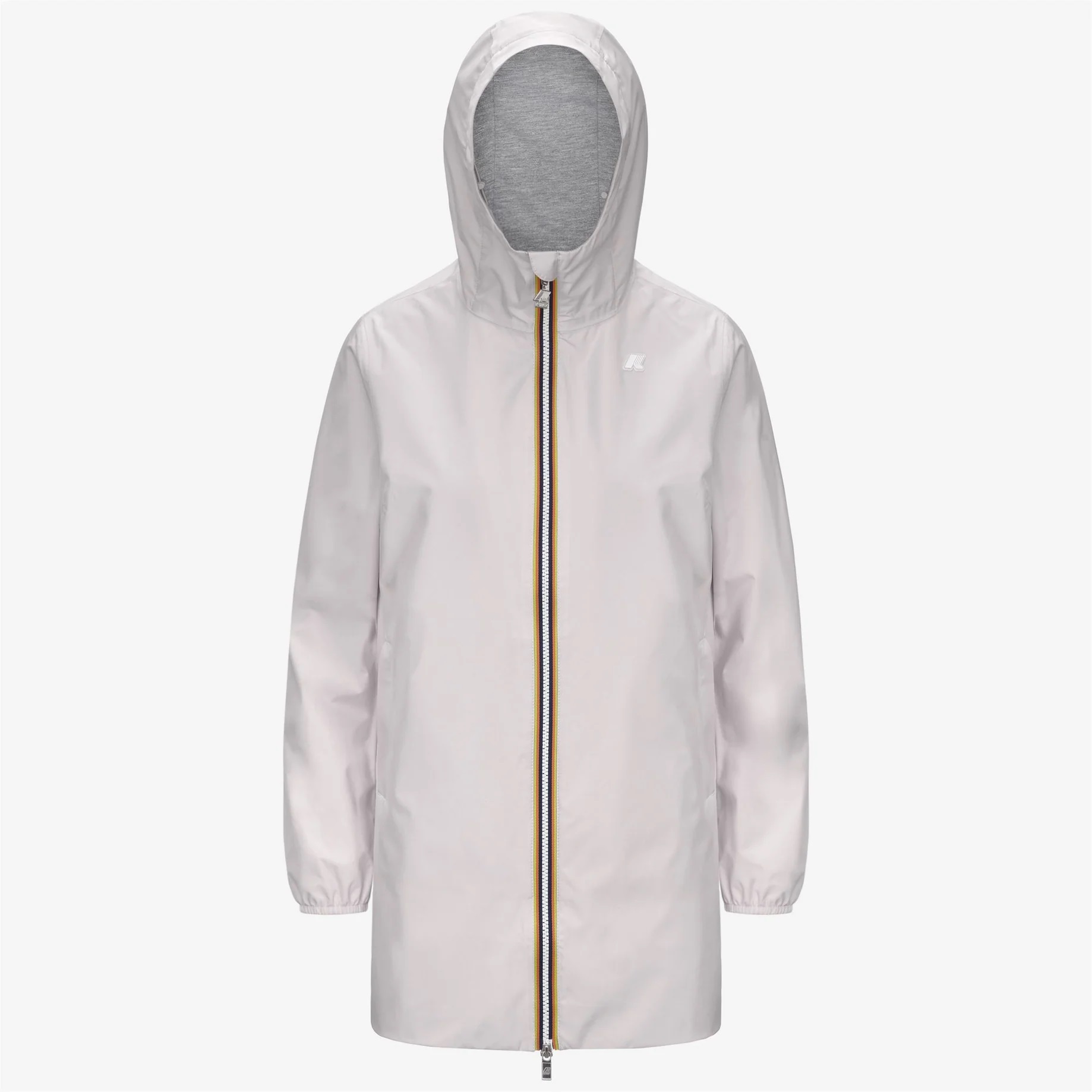 Sophie è una giacca da donna di lunghezza media che si caratterizza per la linea slim che valorizza la silhouette. Il modello è realizzato in poliestere stretch antipioggia con una fodera interna in morbido jersey di cotone grigio melange solo sulla parte alta che garantisce massimo comfort, protezione e una sensazione piacevole a contatto con la pelle. L’interno è rifinito con la massima cura dei dettagli: le cuciture sono termonastrate e al punto vita è presente l’iconico tape multicolor K-Way per una nota distintiva e di carattere. Tessuto poliestere stretch impermeabile, antivento, traspirante Fodera in jersey di cotone Cuciture termonastrate Cappuccio non staccabile Chiusura con zip Polsi con elastico 2 tasche con zip Taglio di ventilazione sul retro Fitting regolare Logo in silicone bianco