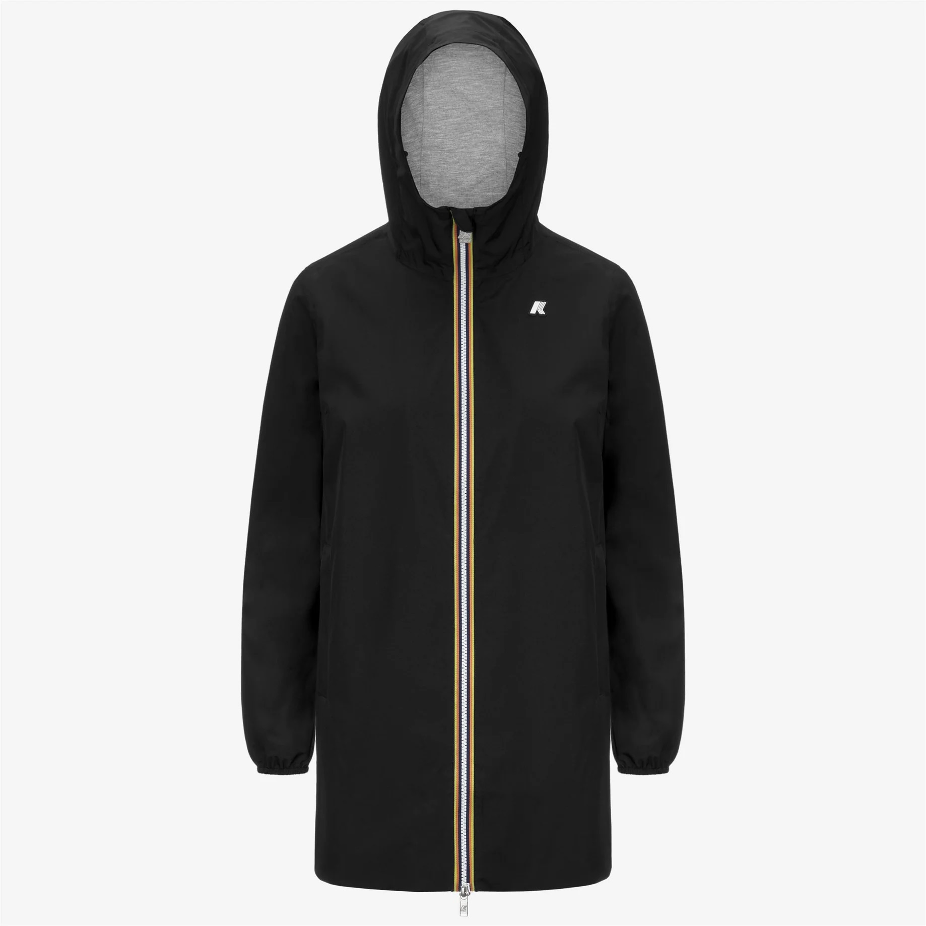 Sophie è una giacca da donna di lunghezza media che si caratterizza per la linea slim che valorizza la silhouette. Il modello è realizzato in poliestere stretch antipioggia con una fodera interna in morbido jersey di cotone grigio melange solo sulla parte alta che garantisce massimo comfort, protezione e una sensazione piacevole a contatto con la pelle. L’interno è rifinito con la massima cura dei dettagli: le cuciture sono termonastrate e al punto vita è presente l’iconico tape multicolor K-Way per una nota distintiva e di carattere. Tessuto poliestere stretch impermeabile, antivento, traspirante Fodera in jersey di cotone Cuciture termonastrate Cappuccio non staccabile Chiusura con zip Polsi con elastico 2 tasche con zip Taglio di ventilazione sul retro Fitting regolare Logo in silicone bianco