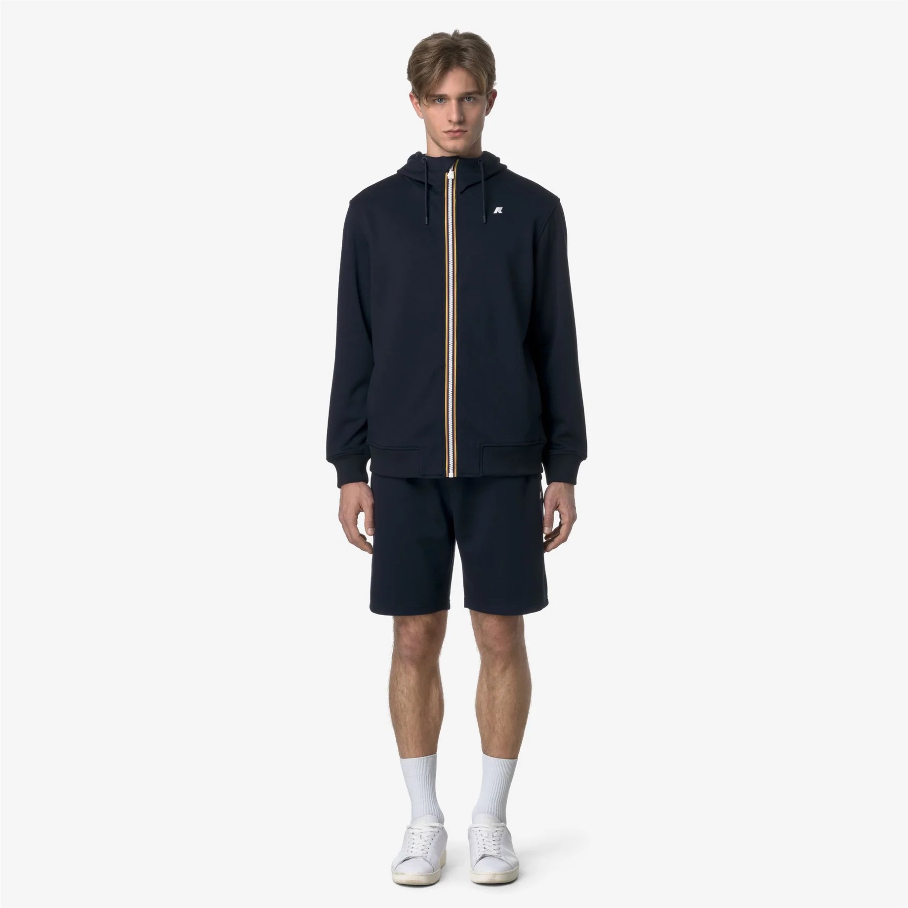 I bermuda da uomo Theotime sono ideali per il tempo libero e comodi per lo sport grazie al look rilassato e versatile. Il modello, dotato di gamba dritta, vita regolabile con coulisse e tasca posteriore, offre comfort e libertà di movimento. Tessuto interlock spessorato opaco Bordo vita con elastico e coulisse regolabile Due tasche laterali Tasca con zip sul retro Fitting regolare Logo in silicone bianco