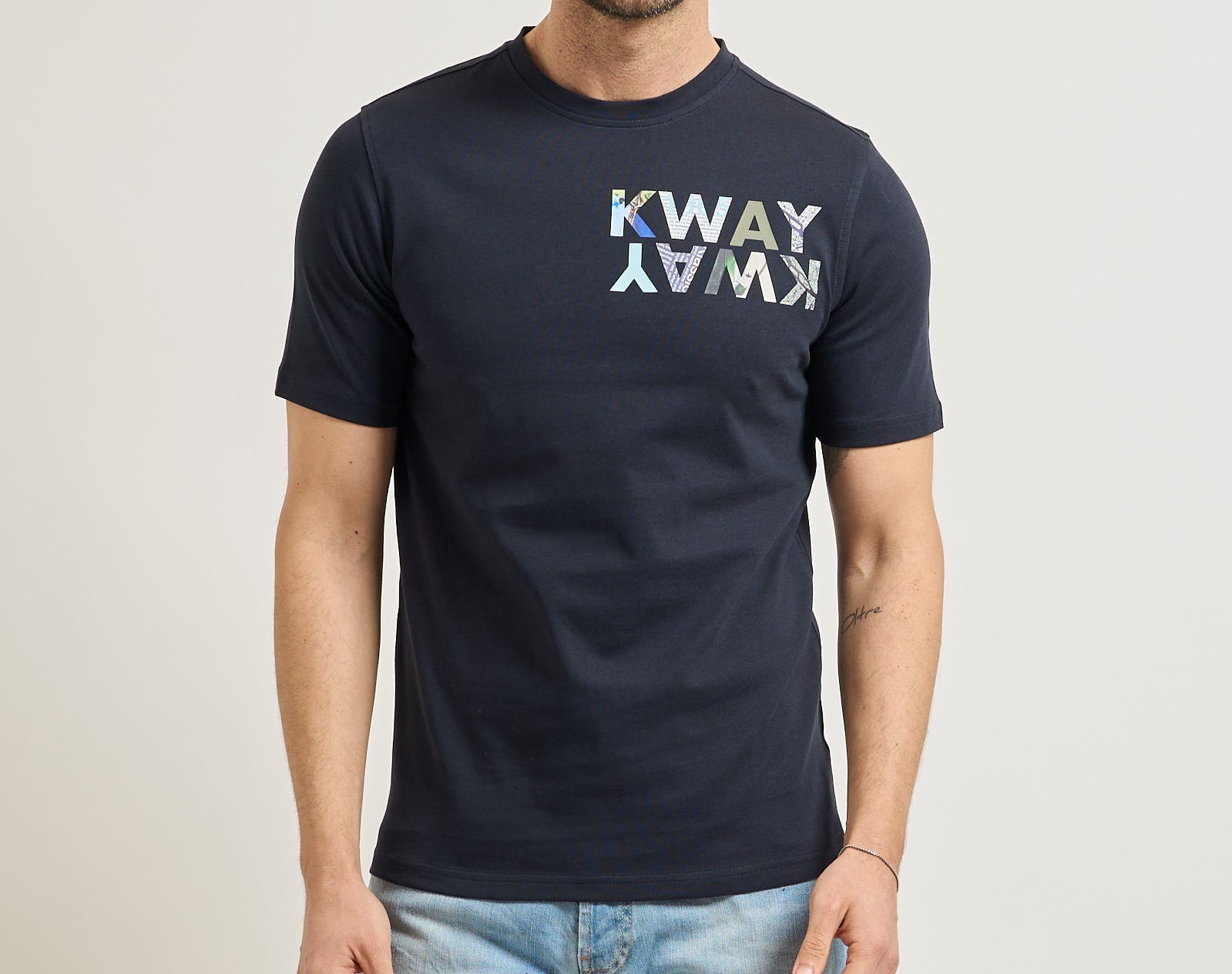 Odom è una T-shirt da uomo dal look casual. Realizzata in jersey di cotone di medio peso per una vestibilità strutturata, presenta una stampa grafica con lettering K-Way. Tessuto jersey di cotone 180g Girocollo Vestibilità slim Grafica stampata sul fronte