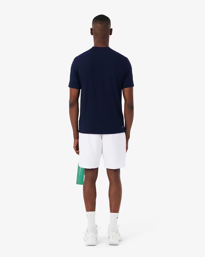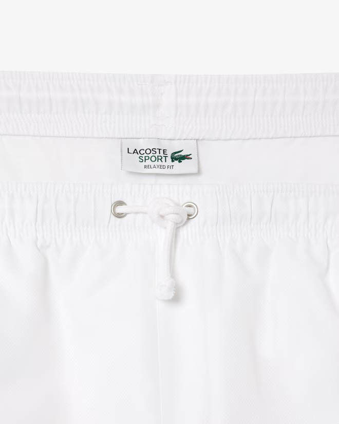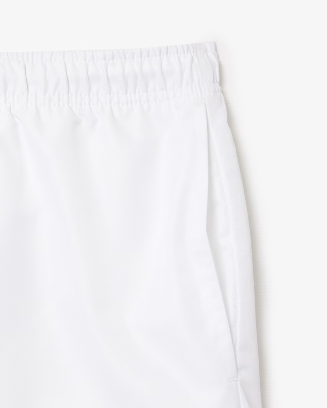Questi shorts sono pensati per le normali sessioni di tennis e sono realizzati in taffetà a rombi, uno dei tessuti iconici di Lacoste. Un capo essenziale del guardaroba maschile, caratterizzato da taglio classico e fodera in jersey. This item runs large. We advise you to take one size smaller than your usual size. Tradizionale taffetà a rombi leggero Relaxed fit Tessuto elasticizzato per la libertà di movimento Altezza del cavallo: 8,5" / 21,5 cm Coccodrillo ricamato sulla gamba