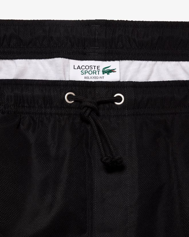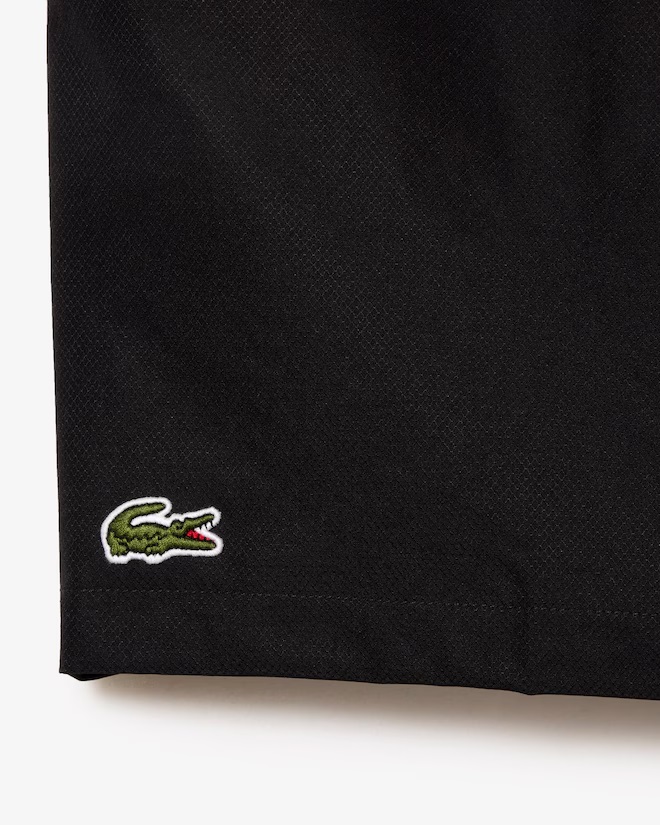 Questi shorts sono pensati per le normali sessioni di tennis e sono realizzati in taffetà a rombi, uno dei tessuti iconici di Lacoste. Un capo essenziale del guardaroba maschile, caratterizzato da taglio classico e fodera in jersey. This item runs large. We advise you to take one size smaller than your usual size. Tradizionale taffetà a rombi leggero Relaxed fit Tessuto elasticizzato per la libertà di movimento Altezza del cavallo: 8,5" / 21,5 cm Coccodrillo ricamato sulla gamba