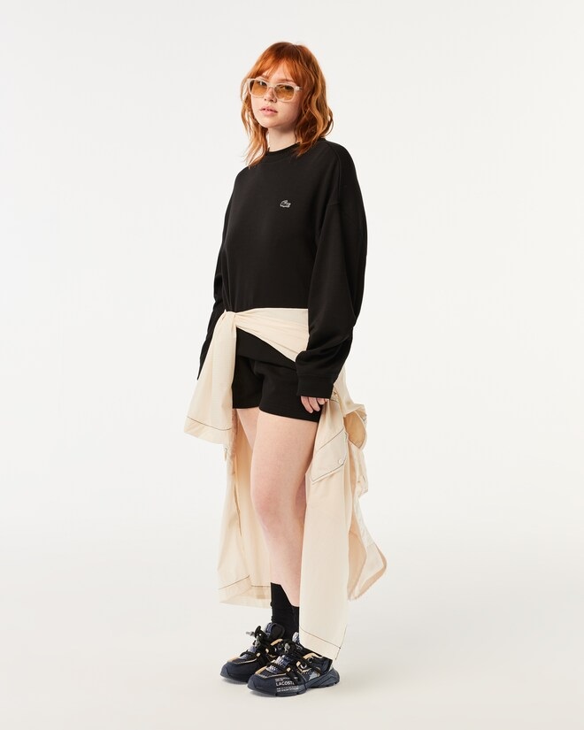 Questa felpa è il frutto di 90 anni di esperienza nella moda e nello sport di Lacoste. Realizzata in confortevole tessuto double face, con un taglio morbido, un drappeggio fluido e un design minimalista rifinito con piccoli dettagli, tra cui una stampa sulla parte posteriore. Un must have casual e chic. This product has an oversized fit. You prefer a normal fit? Choose one size smaller than your usual size. Tessuto double face elasticizzato in misto cotone Taglio oversize, spalle scese Stampa Lacoste sulla parte posteriore Fascia a costine su collo, polsini e vita Coccodrillo in silicone sul petto Cotone (75%), Poliestere (20%), Elastan (5%)
