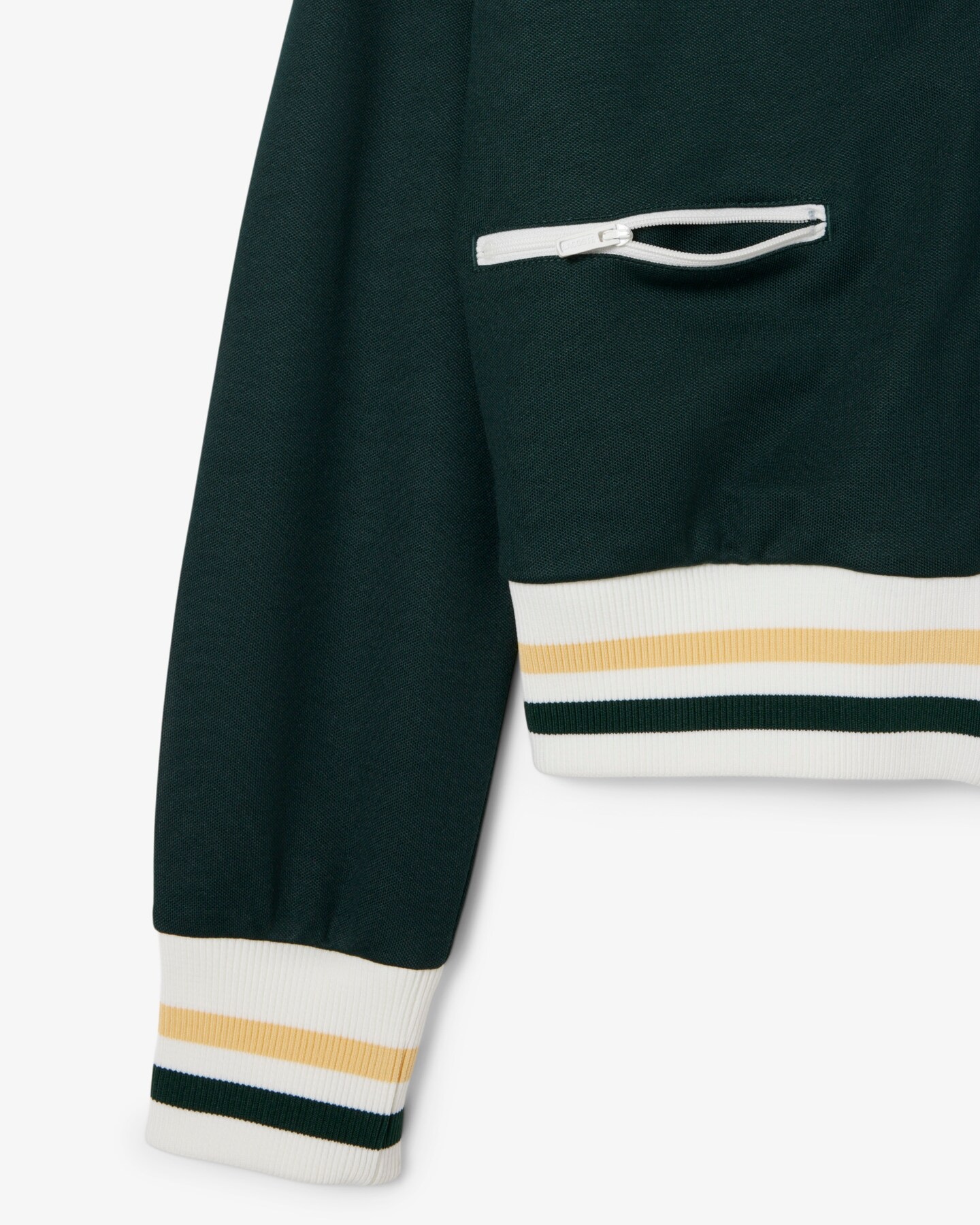 Questa felpa con zip di Lacoste, creatori di sportswear dal 1933, è una lezione di eleganza e design all'avanguardia. Realizzata con la nostra iconica maglia in piqué, questa felpa presenta bordi a righe e a coste per un look audace. Il connubio perfetto tra moda e sportswear, rifinito con l'iconico coccodrillo ricamato. Piqué di cotone organico interlock e poliestere riciclato Taglio dritto, regular fit Tasca con zip sul lato destro Dettaglio a coste a righe su collo, vita e polsini Coccodrillo ricamato cucito sul petto Supporto principale: Poliestere (51%), Cotone (49%) / Bordo a coste: Poliestere (97%), Elastan (3%) / Fondo tasca: Poliestere (100%)