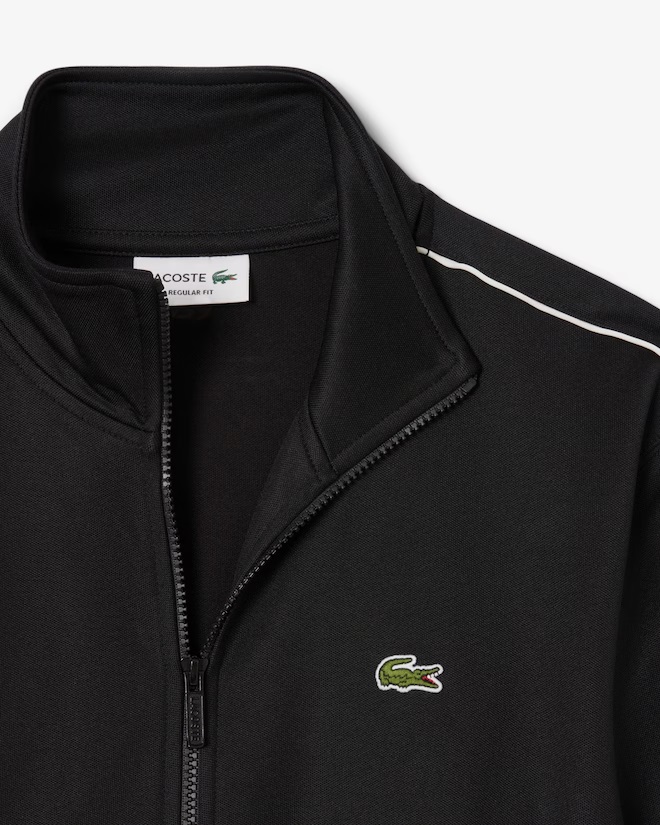 L'iconica tuta Lacoste, per l'eleganza francese in movimento. Questa giacca con zip in piqué interlock resistente all'abrasione è il risultato di una competenza tecnica unica, che unisce stile sportivo, design ergonomico e resistenza. Un capo essenziale del guardaroba maschile, rifinito con iconici dettagli a contrasto. Piqué interlock resistente all'abrasione Taglio regular fit leggermente aderente Due tasche con zip Bordo a contrasto sulle maniche Coccodrillo ricamato sul petto Supporto principale: Poliestere (51%), Cotone (49%) / Bordo a coste: Poliestere (96%), Elastan (4%)