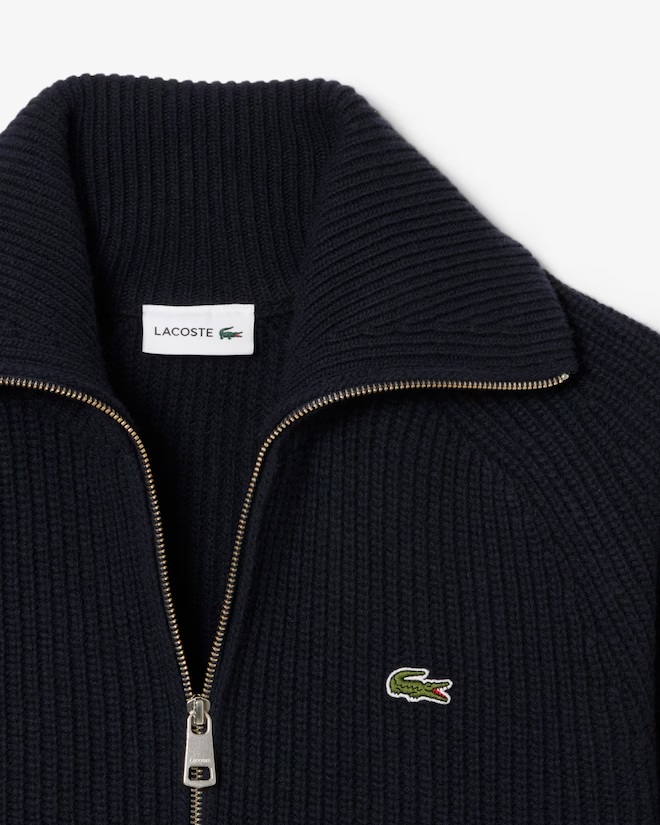 Questo maglione a collo alto è il frutto di 90 anni di esperienza nella maglieria Lacoste e di un design elegante. Realizzato in morbida e calda lana cardata con una sofisticata lavorazione a coste perlate, caratterizzata da sottili variazioni sulle maniche. Un design senza tempo, rifinito con un caratteristico coccodrillo ricamato e dettagli ergonomici tra cui una zip a doppio cursore. Maglia di lana cardata a coste da fonti rispettose del benessere animale Maglia spessa calibro 5 Zip centrale con doppio cursore Due tasche laterali Coccodrillo ricamato sul petto