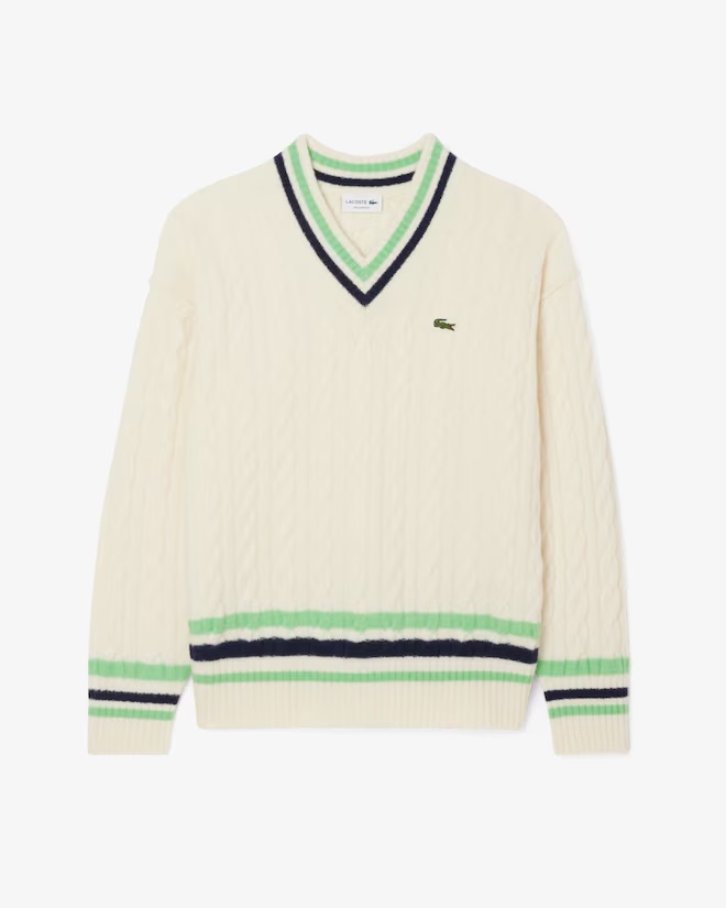 Una nuova ed elegante rivisitazione dell'essenziale maglione da tennis Lacoste, realizzato appositamente per l'inverno. Realizzato in un filato morbido e soffice per una sensazione morbida e testurizzata, con dettagli in maglia a trecce e iconiche righe colorate. Un stile autentico e tradizionale, rifinito con un caratteristico coccodrillo ricamato. Maglia di lana a trecce da fonti rispettose del benessere animale Relaxed fit, confortevole, con spalle leggermente scese Maglia finezza 7 di media pesantezza Righe a contrasto su collo, vita e polsini Coste su collo, polsini e orlo Coccodrillo ricamato sul petto Lana (80%), Poliammide (18%), Elastan (2%)