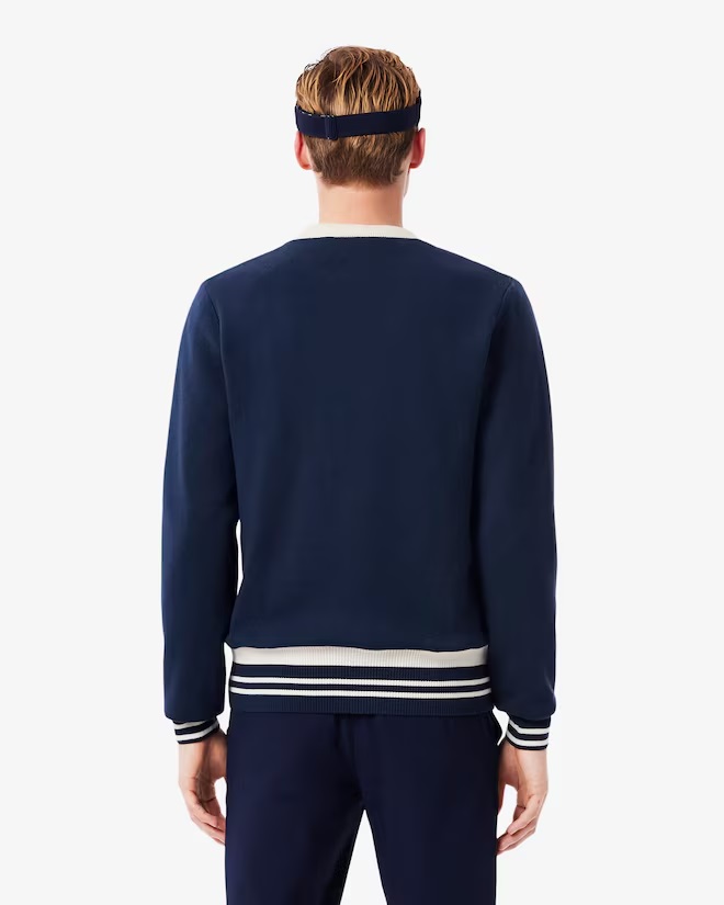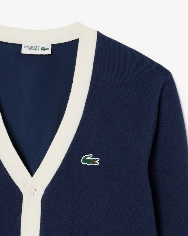Questo cardigan, provato e testato dai giocatori di Lacoste, è un must del golf. Realizzato in maglia di misto lana e cotone con fodera tecnica per comfort, calore e protezione dal vento. Uno stile pratico con dettagli sofisticati, tra cui righe a contrasto, che porta uno stile elegante su qualsiasi percorso. Maglia interlock elasticizzata di lana e cotone organico Fodera antivento Collo, orlo e polsini a coste Righe a contrasto su vita e polsini Coccodrillo in silicone sul petto Supporto principale: Cotone (85%), Lana (15%) / Fodera: Poliestere (90%), Elastan (10%)