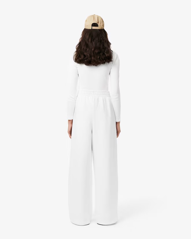 Questi pantaloni della tuta sono realizzati in tessuto piqué double face elasticizzato e morbido. Dotati di gamba ampia e vita elasticizzata, sono caratterizzati da uno stile versatile e rilassato. This item runs large. We advise you to take one size smaller than your usual size. Vita elasticizzata Piega in evidenza lungo la gamba Tasca laterale Borsa interna in jersey Coccodrillo in silicone cucito sotto la tasca Supporto principale: Cotone (75%), Poliestere (20%), Elastan (5%) / Fodera tasca: Cotone (100%)