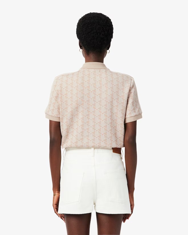 Una nuova e audace interpretazione femminile dell'iconica polo Lacoste. Caratterizzata da un taglio aderente e monogramma in maglia jacquard, con pannelli laterali a righe e colletto a costine. In aggiunta, dettagli sofisticati, tra cui i bottoni in madreperla. Jacquard in poliestere riciclato e cotone organico Taglio aderente slim fit Bottoni in madreperla Pannelli a contrasto lungo i fianchi e sulle maniche Coccodrillo ricamato sul petto