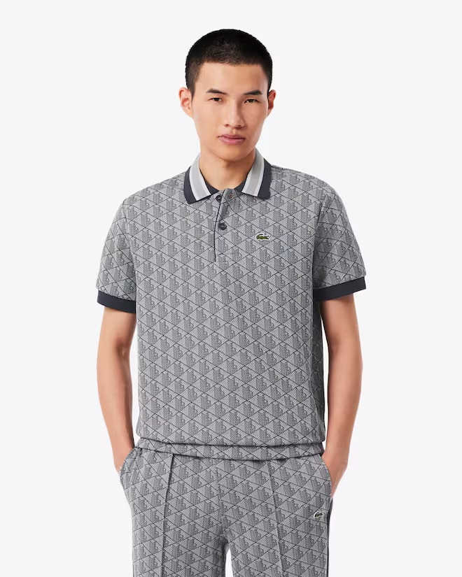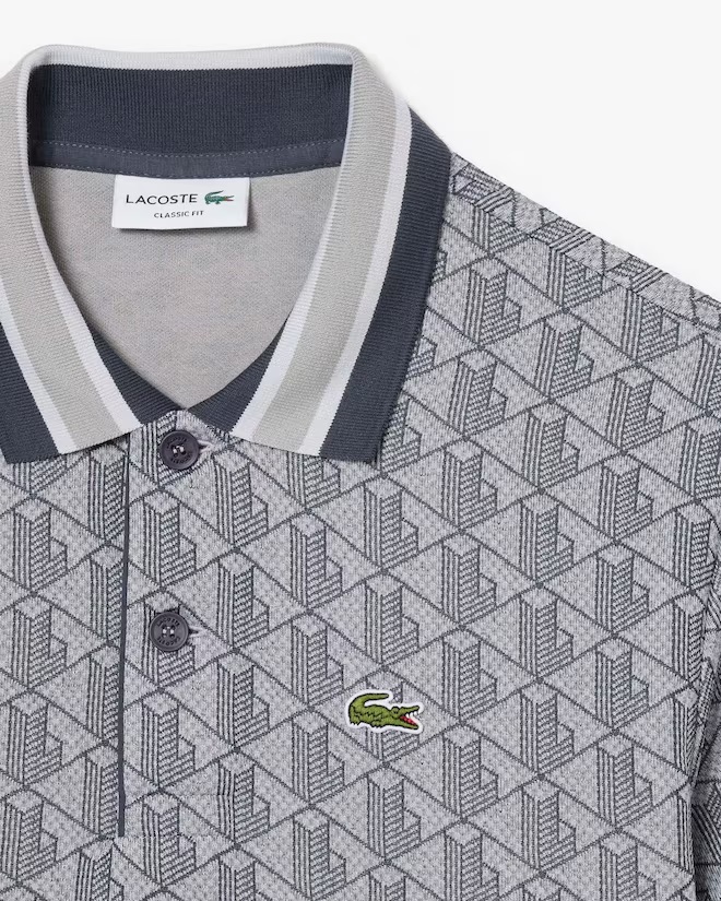 Questa polo propone una nuova, originale rivisitazione del design iconico creato da Lacoste nel 1933. Il motivo con monogramma in maglia jacquard, il bordo a costine e il colletto a righe a contrasto ti aiuteranno a distinguerti dalla massa. Un design decisamente moderno, che fonde comfort ed eleganza. If you hesitate between two sizes, we recommend that you choose a larger size than your usual size. Jacquard di poliestere riciclato e cotone organico Comodo taglio classico Monogramma in maglia jacquard Due bottoni morbidi al tatto Coccodrillo classico ricamato sul petto