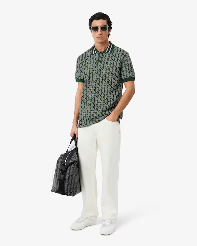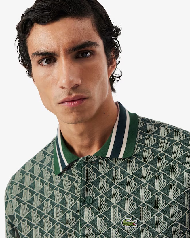 Questa polo propone una nuova, originale rivisitazione del design iconico creato da Lacoste nel 1933. Il motivo con monogramma in maglia jacquard, il bordo a costine e il colletto a righe a contrasto ti aiuteranno a distinguerti dalla massa. Un design decisamente moderno, che fonde comfort ed eleganza. If you hesitate between two sizes, we recommend that you choose a larger size than your usual size. Jacquard di poliestere riciclato e cotone organico Comodo taglio classico Monogramma in maglia jacquard Due bottoni morbidi al tatto Coccodrillo classico ricamato sul petto