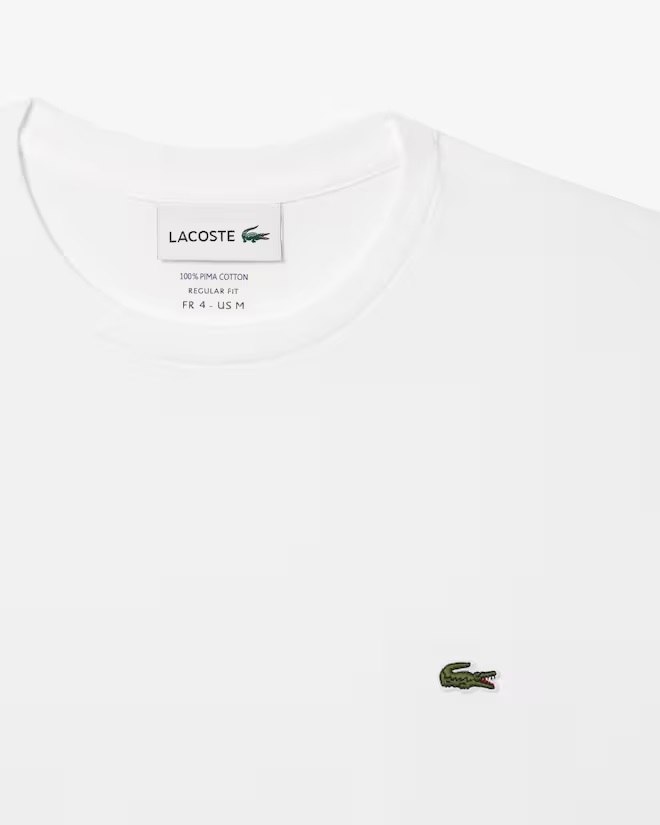 Lacoste, esperta di abbigliamento sportivo dal 1933, si impegna a utilizzare tessuti della migliore qualità. Questa t-shirt versatile ed essenziale è realizzata in cotone di alta qualità, coltivato in Perù, particolarmente fine, leggero, resistente e con una leggera lucentezza. If you hesitate between two sizes, we recommend that you choose a larger size than your usual size. Pregiato cotone Pima Taglio dritto, regular Peso: 130 g/m² Coccodrillo ricamato sul petto