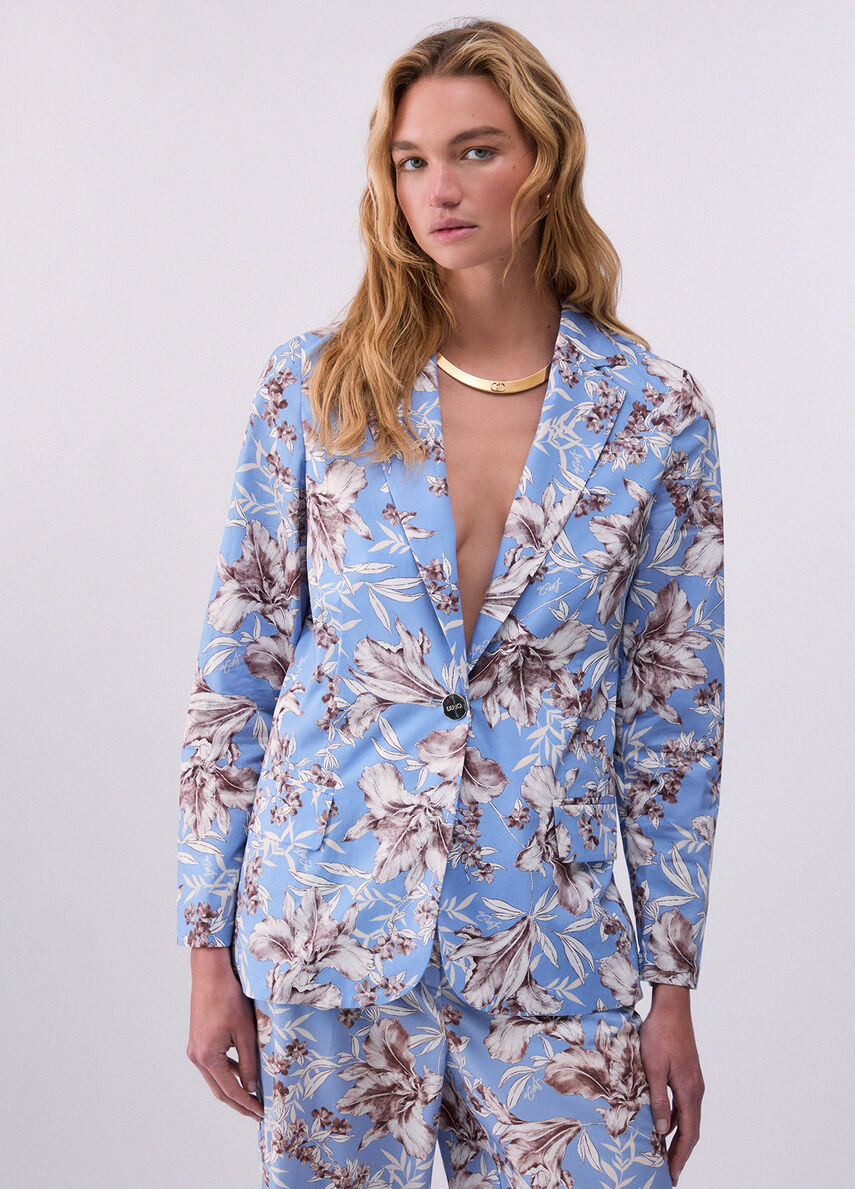 Blazer in popeline Stampa floreale Rever classico Tasche applicate Chiusura con bottone logato