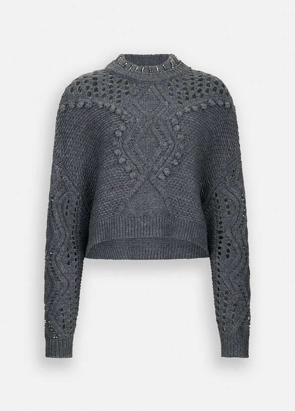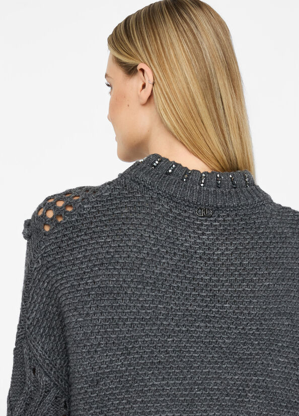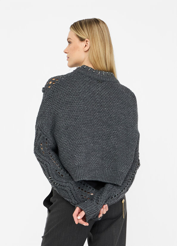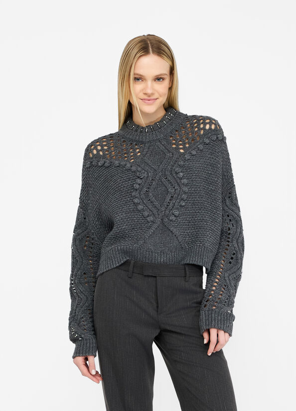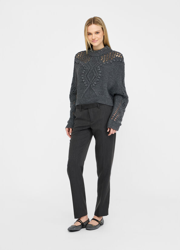 Maglia da donna Filati in misto lana Girocollo con perline ricamate Traforature e dettagli in rilievo