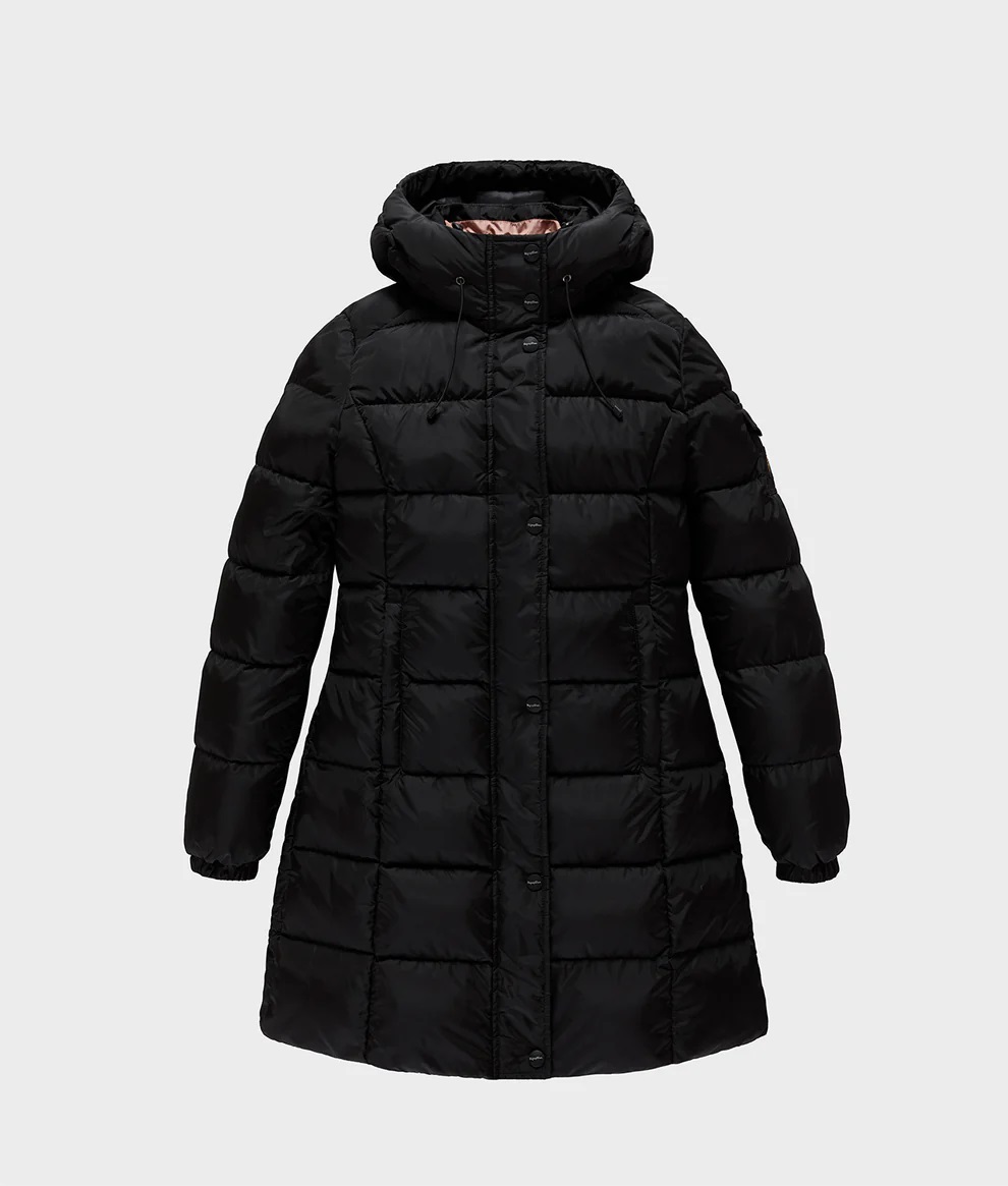 Piumino invernale da Donna lunghezza ¾ dall’aspetto prezioso e ricercato. Imbottitura di 220 grammi in 100% piuma 90-10 che rende il capo estremamente morbido e piacevole da indossare, oltre che caldo e pratico. Esterno composto in 100% nylon opaco antivento ed antipioggia dall’aspetto molto femminile ed attuale.