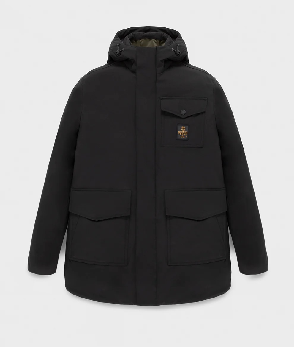 Parka da uomo in soft shell tecnico che si distingue per uno stile semplice e ricercato. Il tessuto esterno è trattato con una finitura idrorepellente che garantisce elevate performance contro le intemperie. L'imbottitura termica RefrigiWear® Thermal Padding, una fibra 100% animal-free, offre calore e leggerezza, rendendolo perfetto per affrontare le temperature invernali. Il design iconico riprende i dettagli dei capi d'archivio RefrigiWear®, assicurando un look senza tempo e altamente funzionale. Aggiungi questo parka al tuo guardaroba invernale per un mix perfetto di stile e prestazioni.