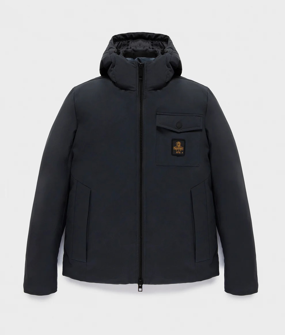 Giubbotto invernale da Uomo con cappuccio, composto in tessuto tecnico soft-shell e con imbottitura in fiocchi di eco-piuma DuPont™ Sorona®. Capo estremamente comodo, caldo e confortevole. Il tessuto garantisce performance elevate grazie al trattamento esterno antivento e idrorepellente. Il look è moderno e pulito.
