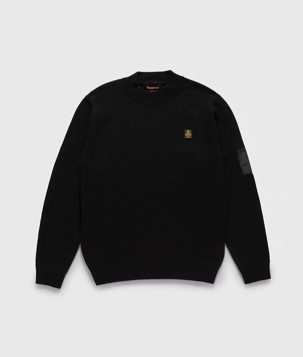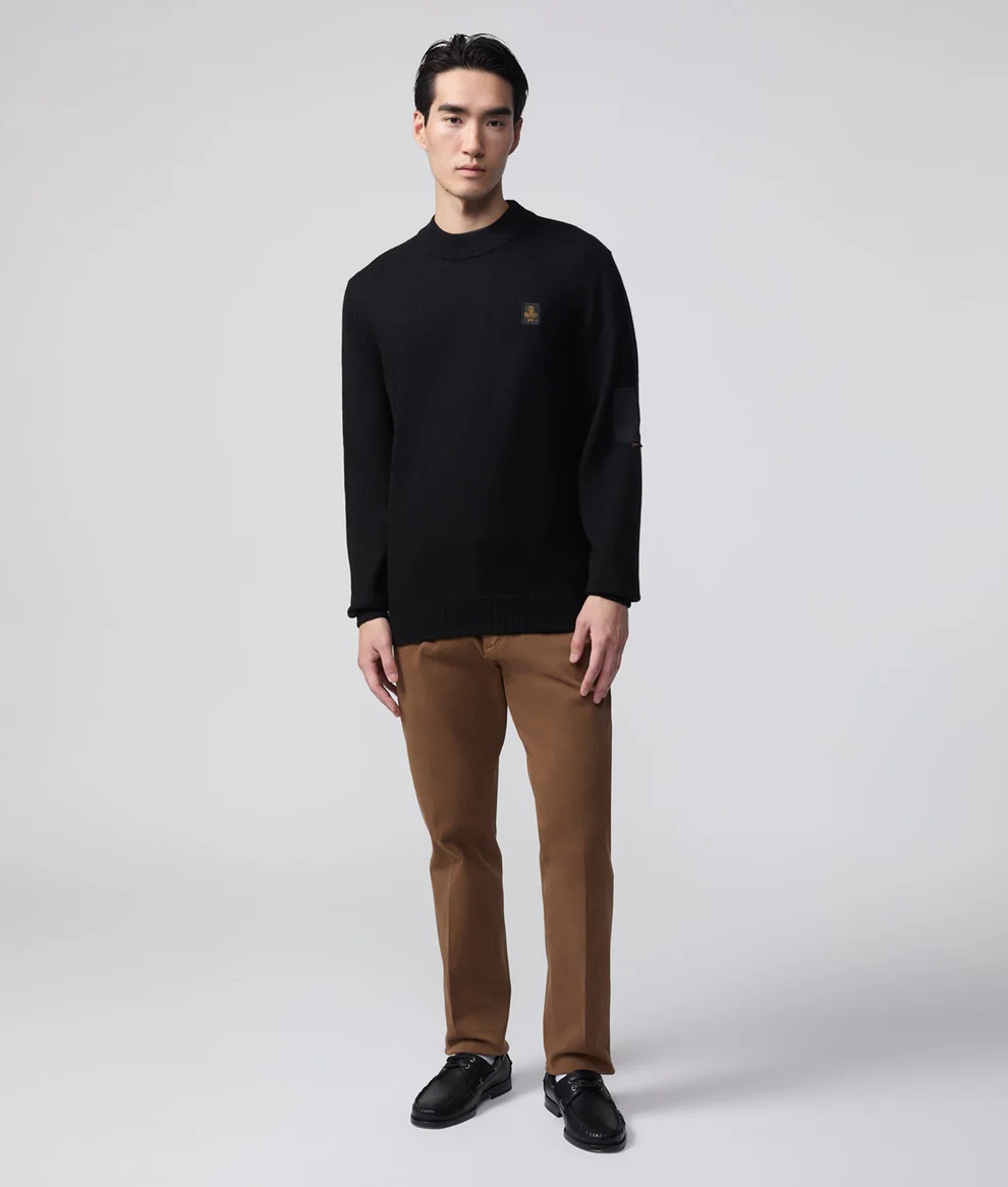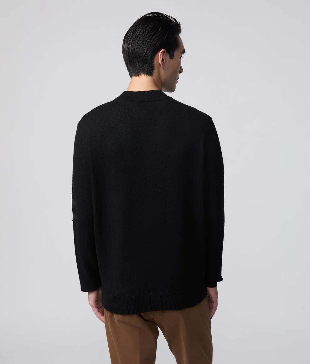 Maglione da uomo in lana cotta dallo stile essenziale e deciso. Caratterizzato da un colletto basso in stile coreano e da una pen pocket sulla manica ispirata al workwear, unisce linee pulite e dettagli funzionali. Vestibilità regular, ideale per affrontare l’inverno con carattere.