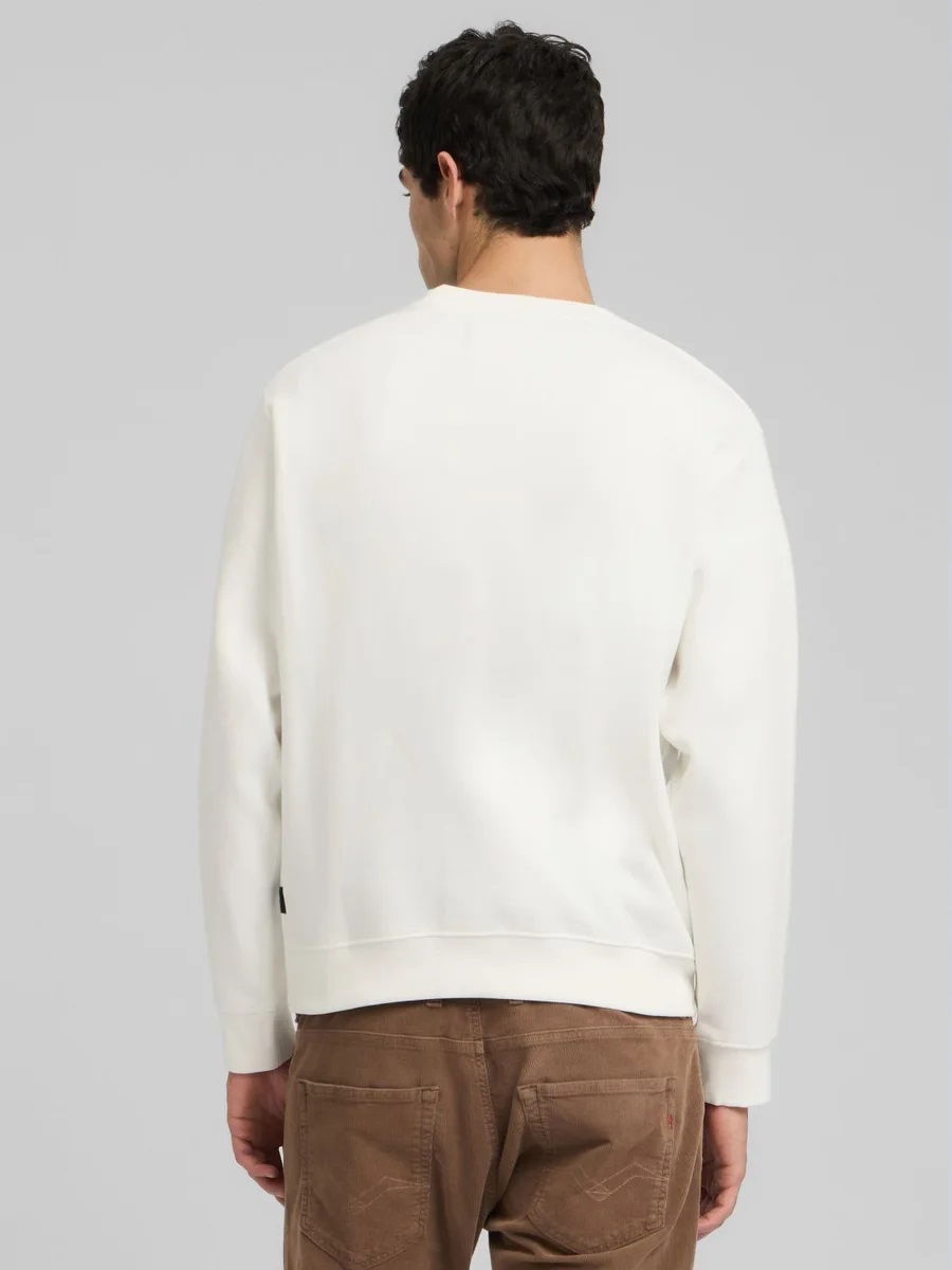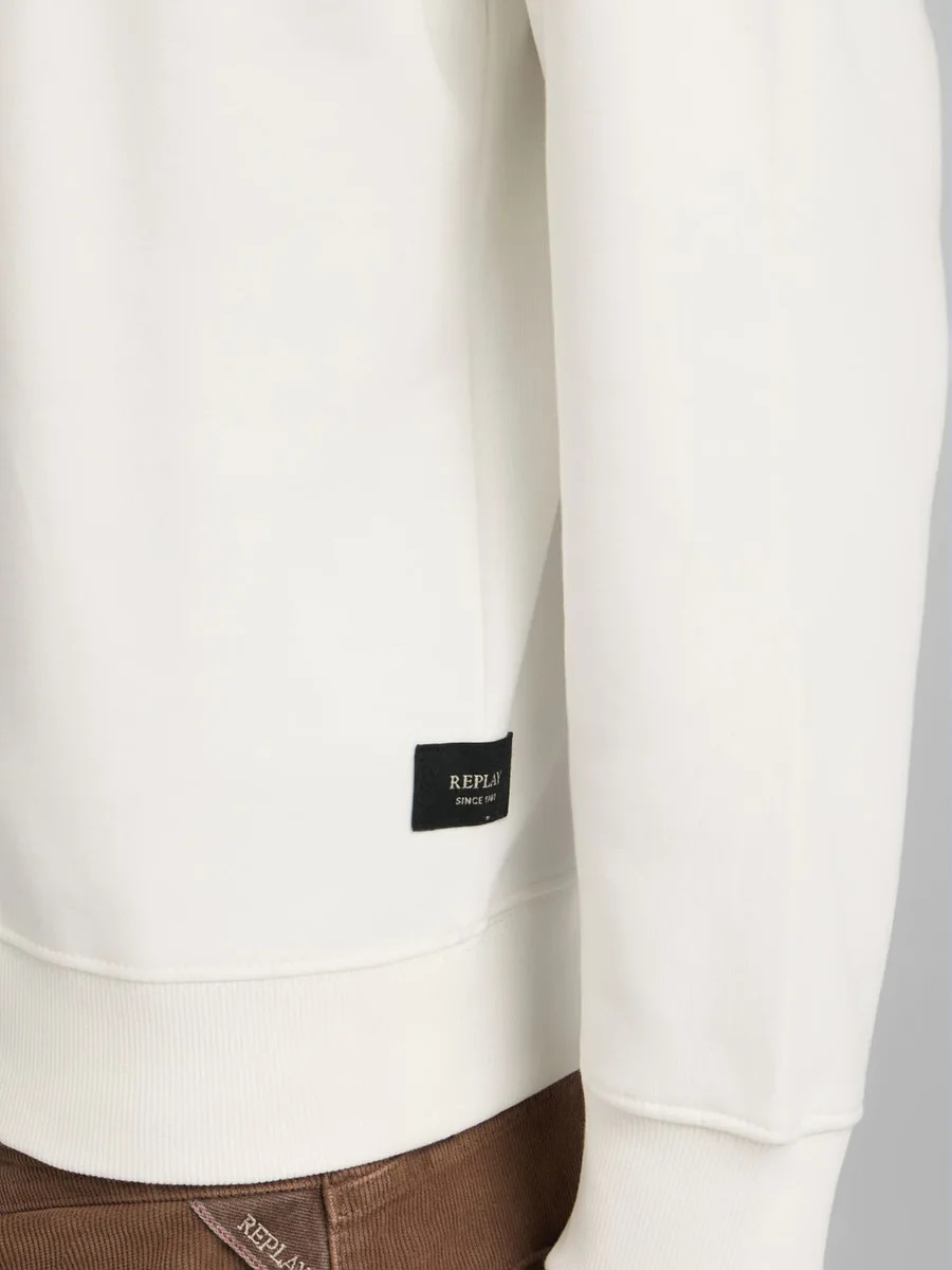Felpa girocollo dalla vestibilità regolare realizzata in misto cotone garzato, garanzia di morbidezza e resistenza. Il modello a maniche lunghe presenta un piccolo inserto triangolare con lavorazione a costine, ripresa anche su girocollo, polsini e fondo capo. Ildesign è completato dall'etichetta Replay sul fianco e dall'emblematico ricamo R sul petto.