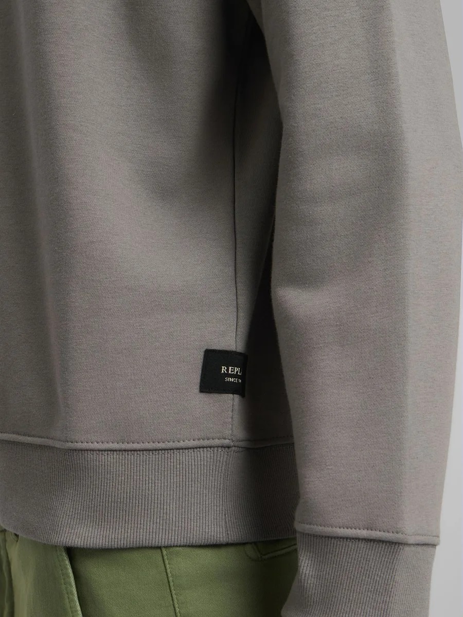 Felpa girocollo dalla vestibilità regolare realizzata in misto cotone garzato, garanzia di morbidezza e resistenza. Il modello a maniche lunghe presenta un piccolo inserto triangolare con lavorazione a costine, ripresa anche su girocollo, polsini e fondo capo. Ildesign è completato dall'etichetta Replay sul fianco e dall'emblematico ricamo R sul petto.