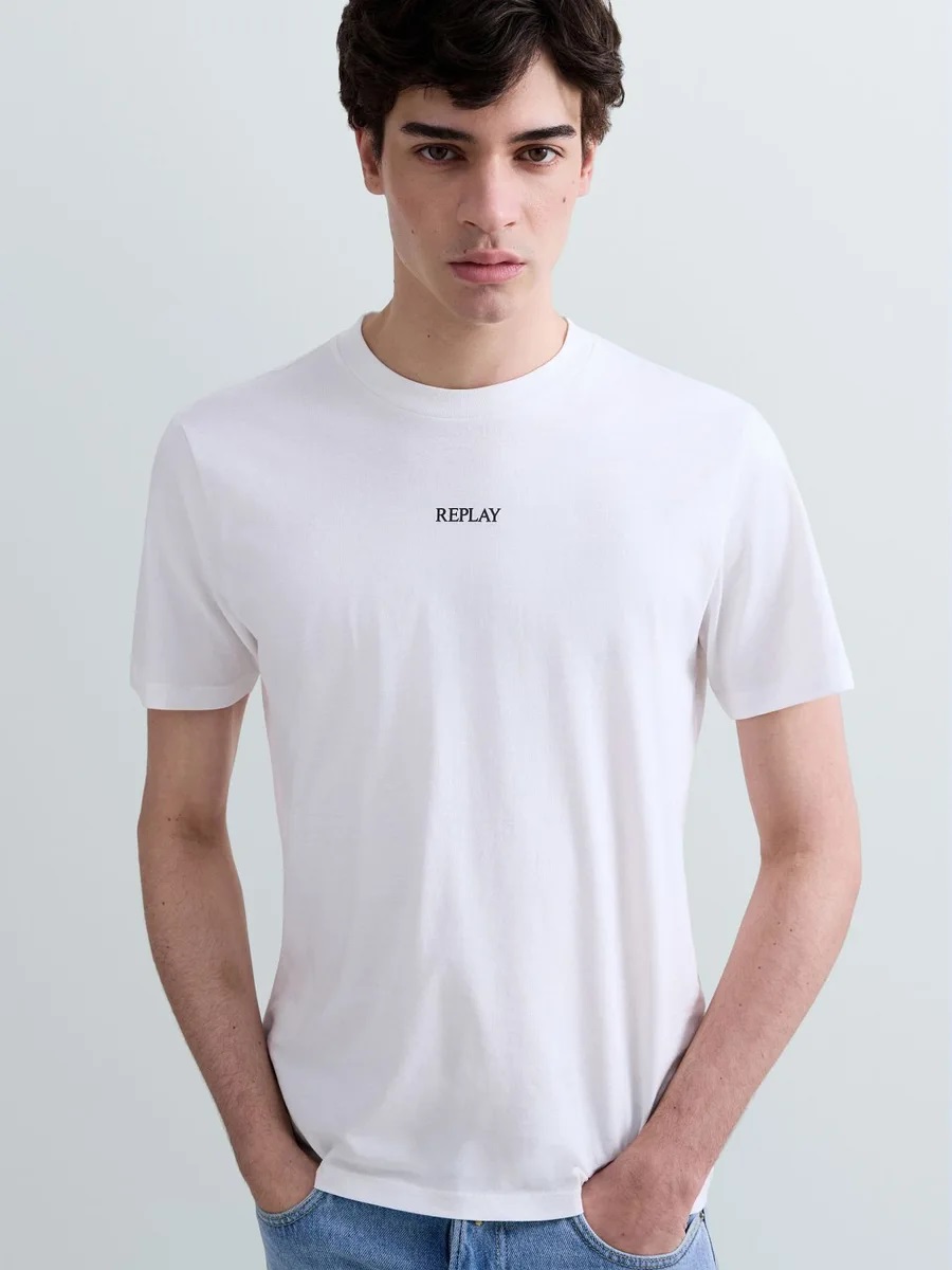 T-shirt girocollo realizzata in jersey di puro cotone, garanzia di freschezza e morbidezza. Il modello a maniche corte da uomo dalla vestibilità regolare si caratterizza per il lettering Replay stampato a contrasto sul petto.
