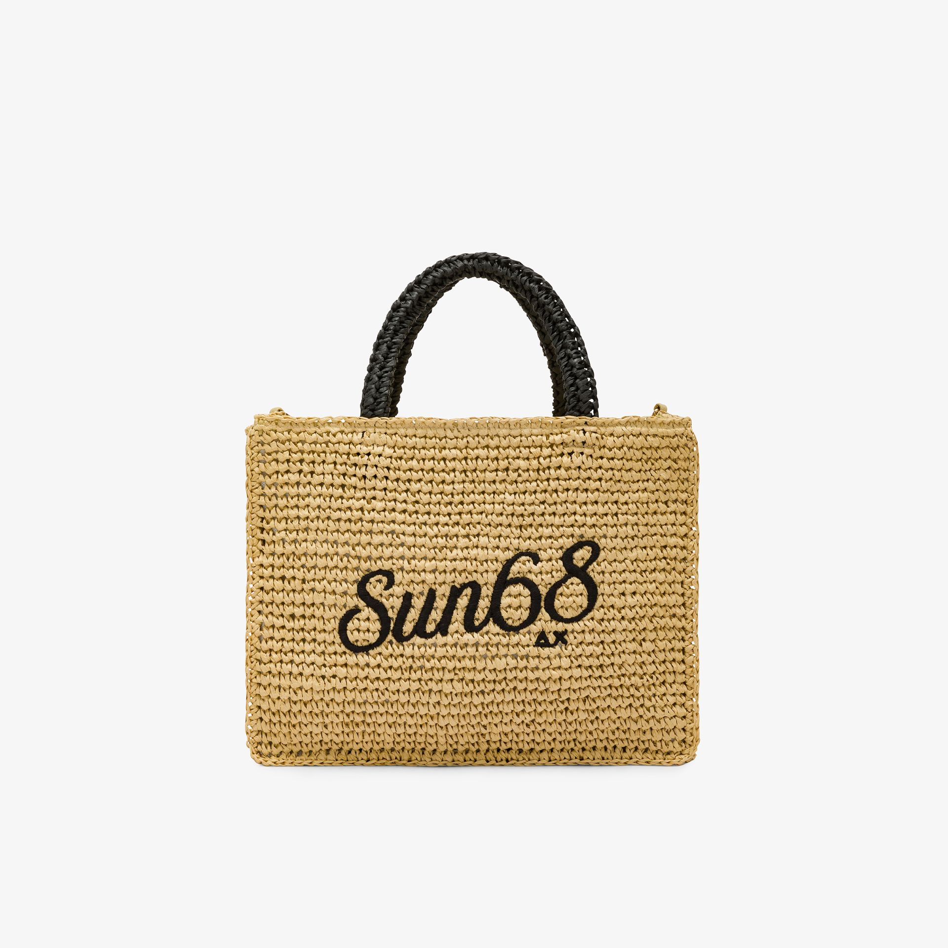 Shopping bag media in rafia Manici Tracolla rimovibile Chiusura con zip Logo SUN68 ricamato sul davanti