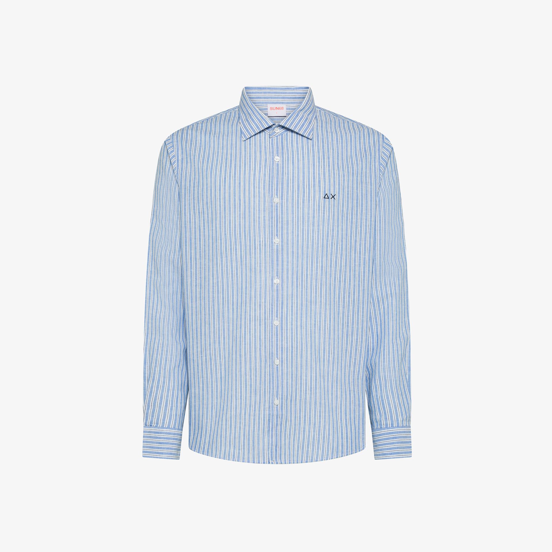 Camicia in lino a righe Colletto alla francese Maniche lunghe Chiusura con bottoni Logo SUN68 ricamato sul petto
